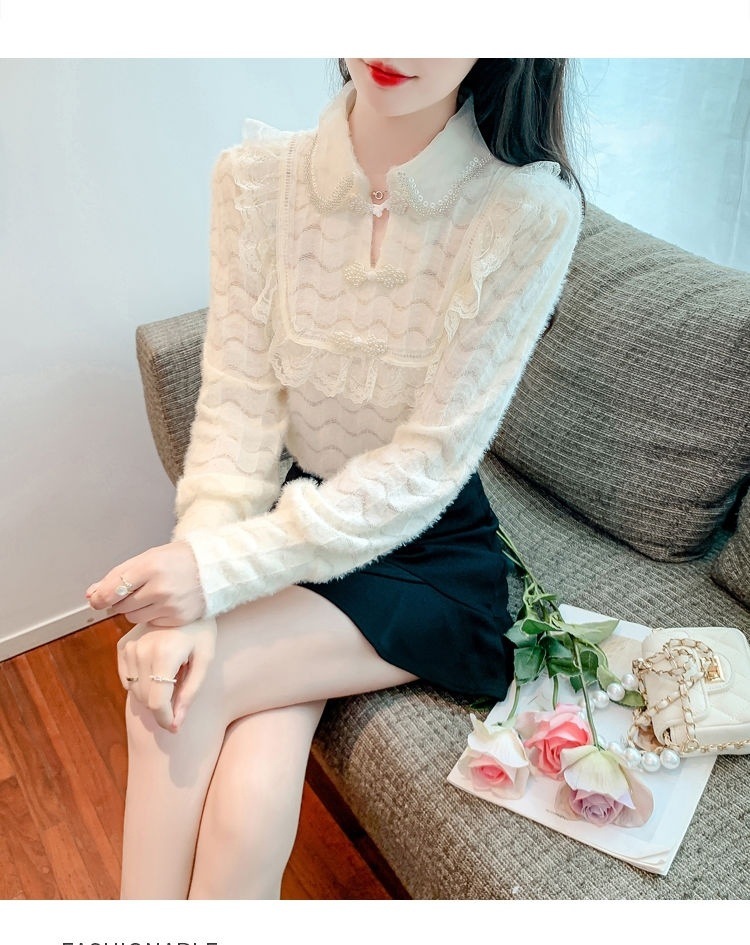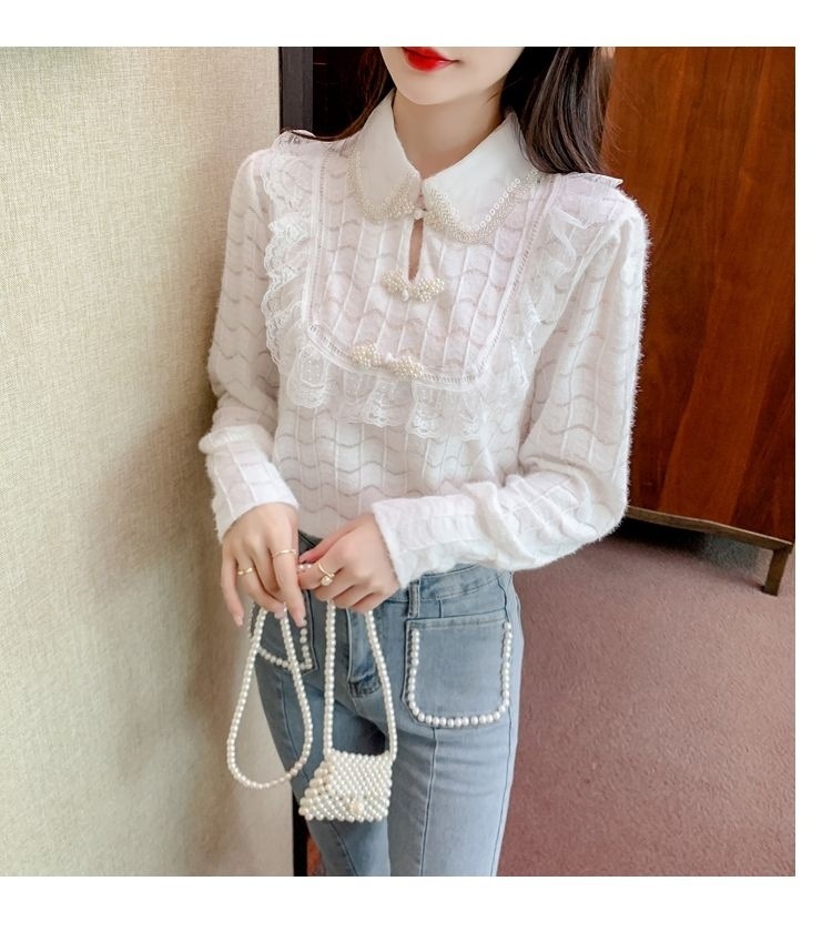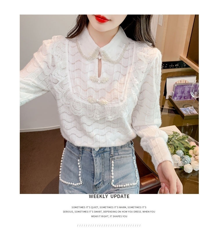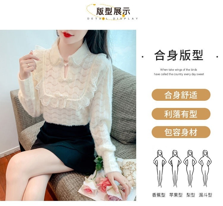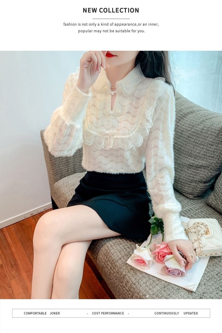 패션 기모 레이스 베이스 셔츠 여자의 가을과 겨울 2023 겨울 새로운 서양 스타일 두꺼운 따뜻한 내부 셔츠 탑