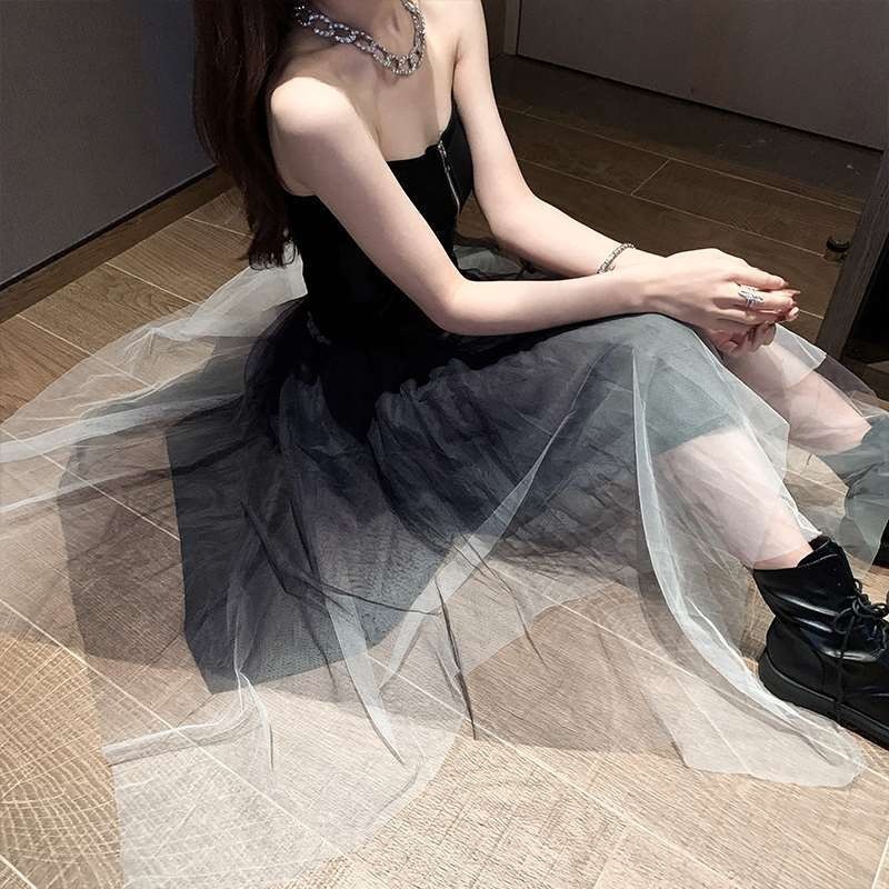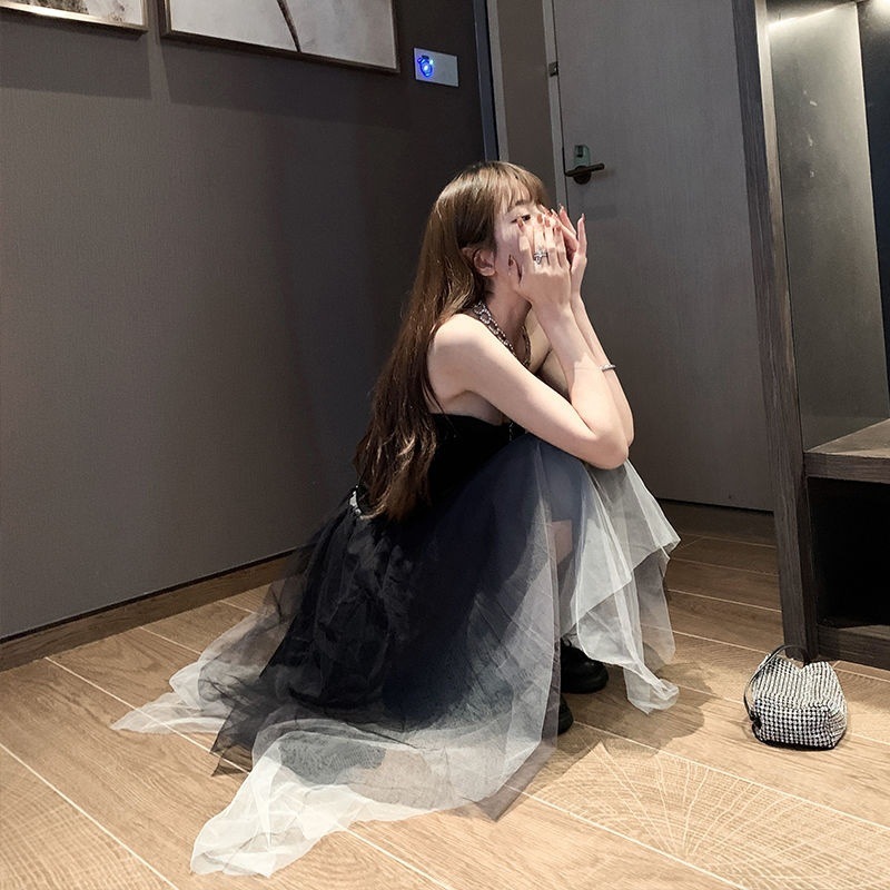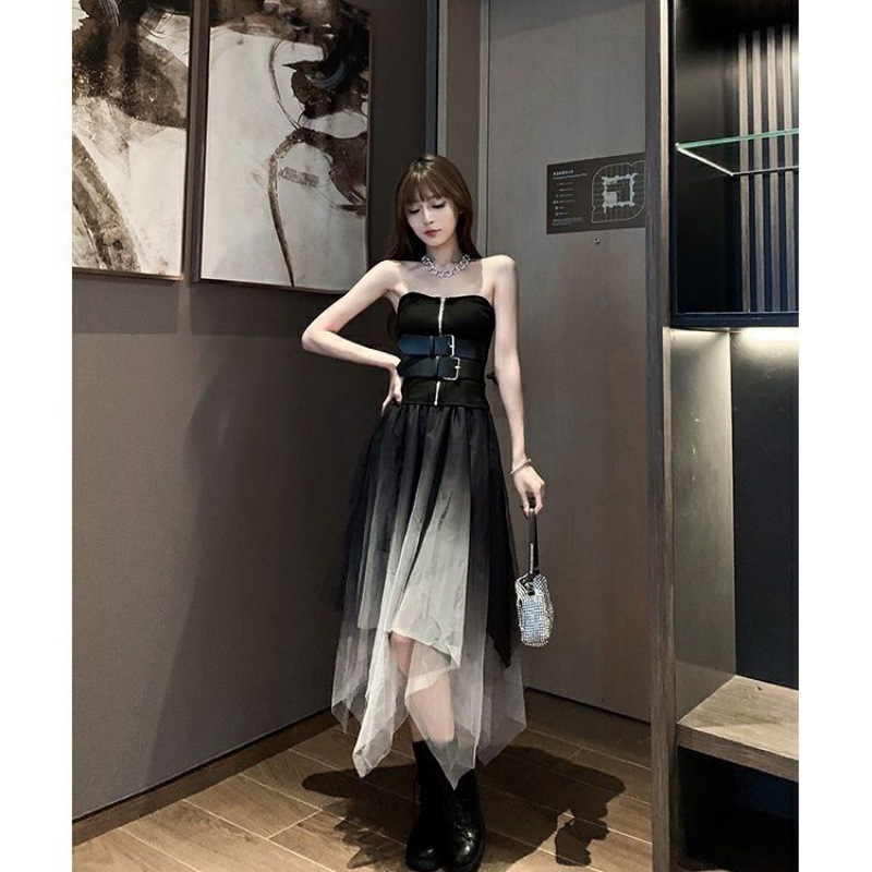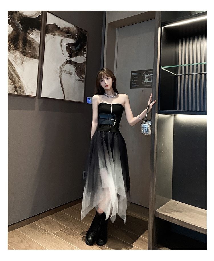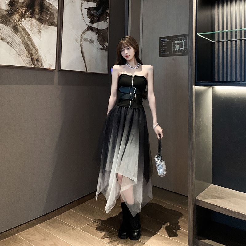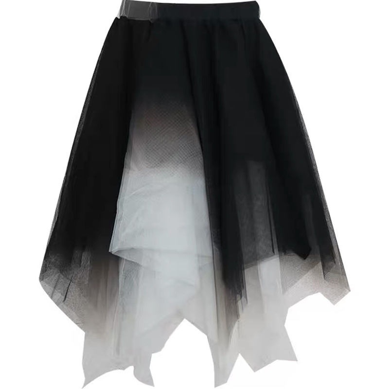 다크 스커트 드레이핑 대형 스윙 하이 허리 여성용 페티 스커트 봄과 여름 우아한 메쉬 슬리밍 불규칙한