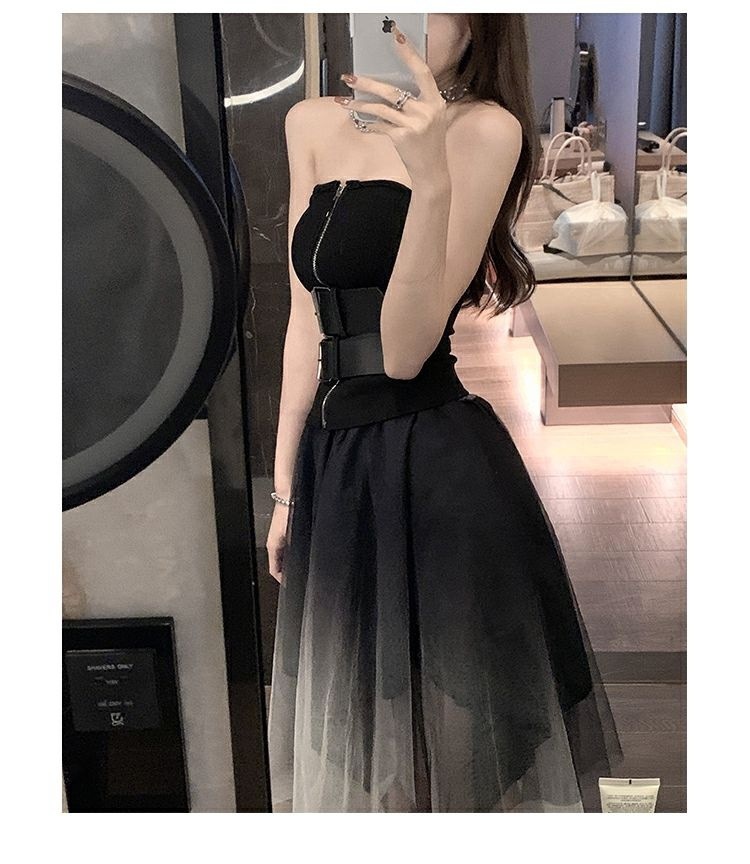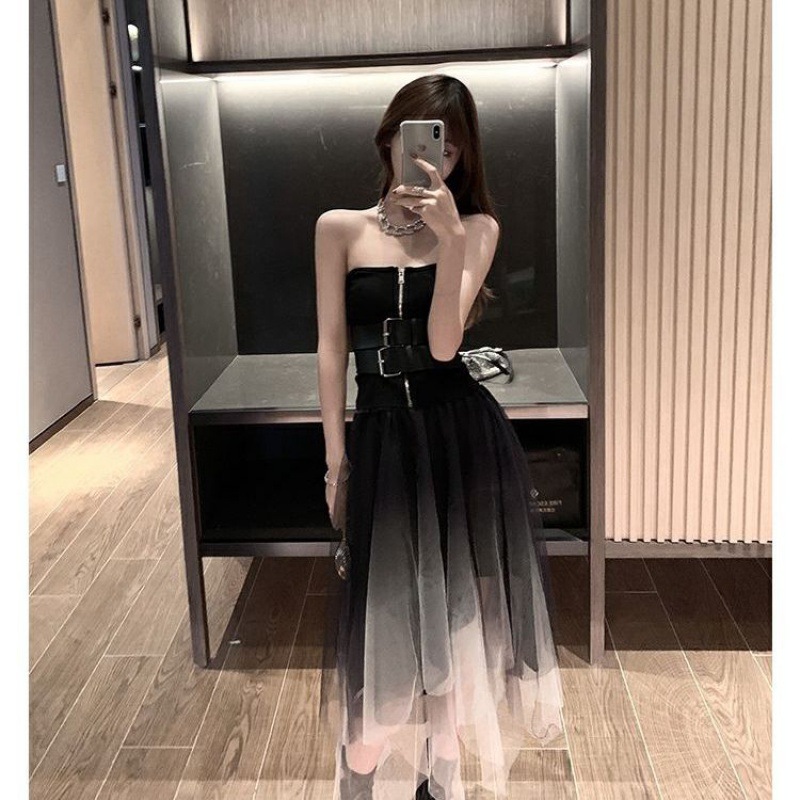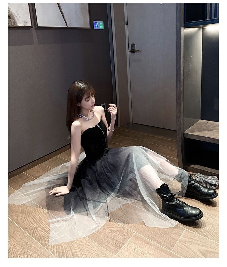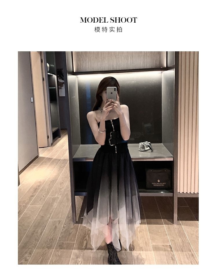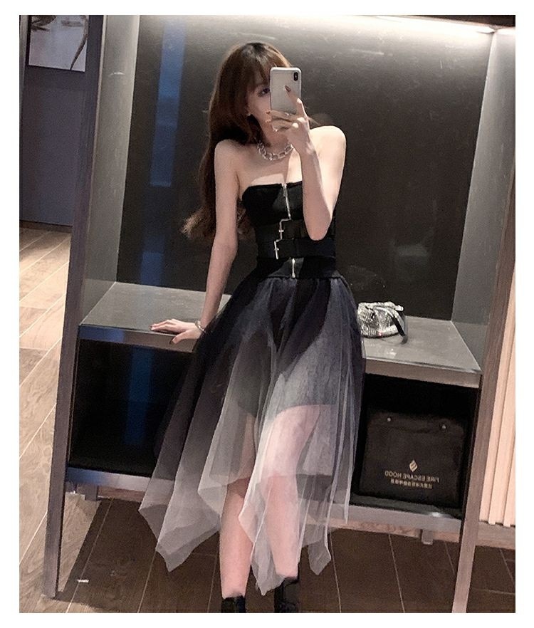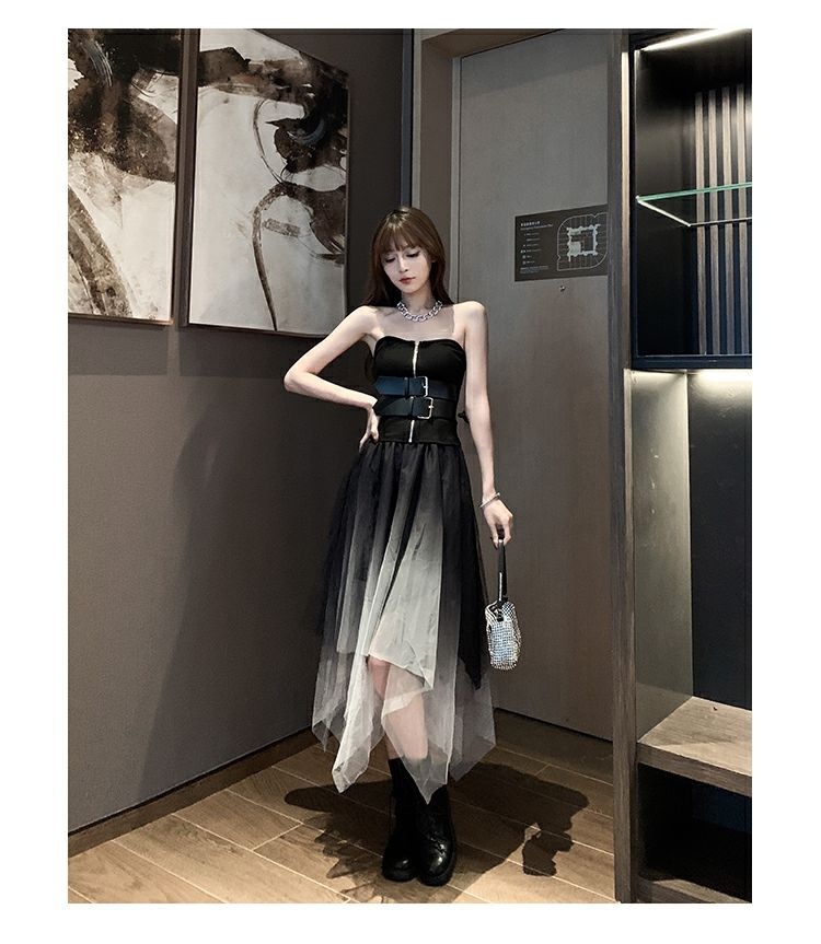 다크 스커트 드레이핑 대형 스윙 하이 허리 여성용 페티 스커트 봄과 여름 우아한 메쉬 슬리밍 불규칙한