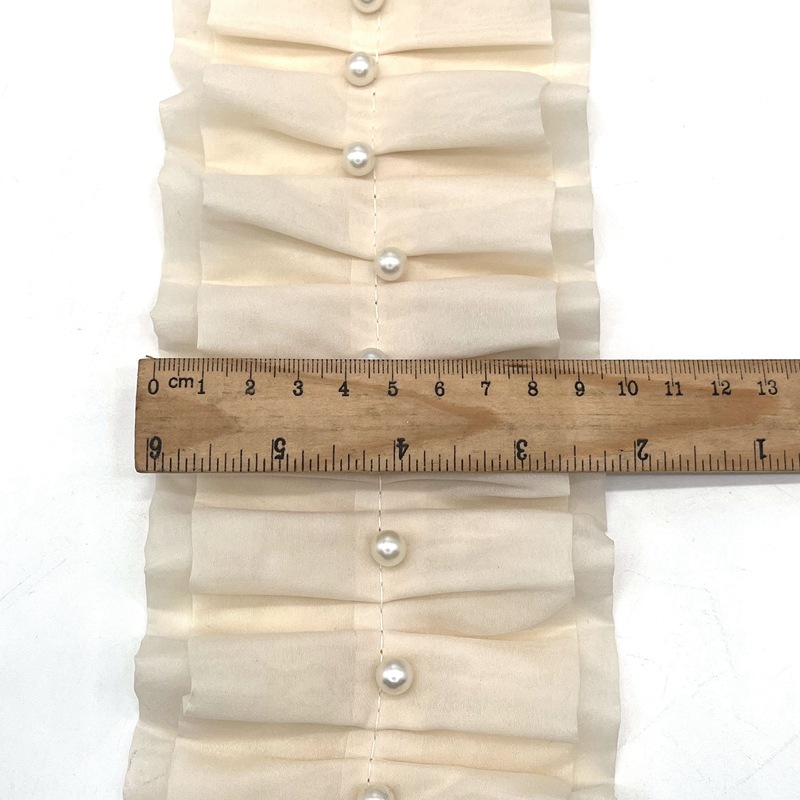 더블 레이어 살구색 옷 DIY 목선 커프 패브릭 장식 9.5 인공 진주 패브릭 주름 레이스 액세서리스토어 가기