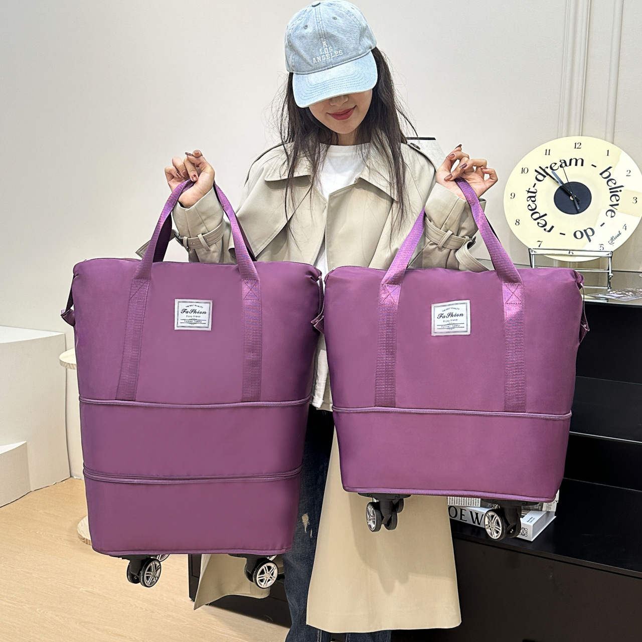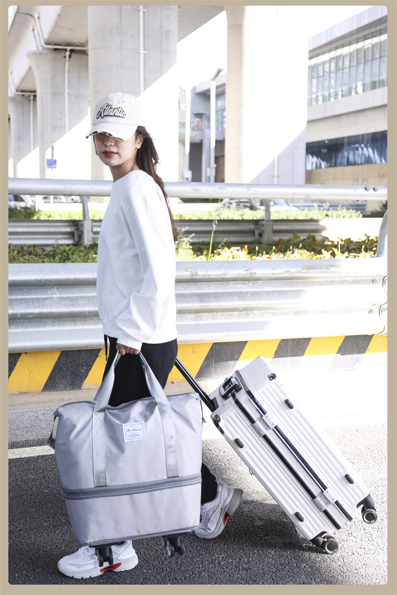 접이식 확장 유니버설 휠 여행 가방 여행 및 탑승 가방 경량 대용량 보관 수하물 가방 더블 레이어 패키지스토어 가기