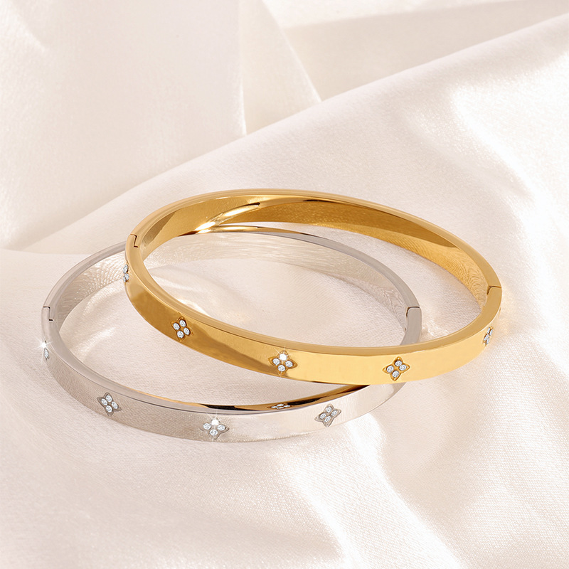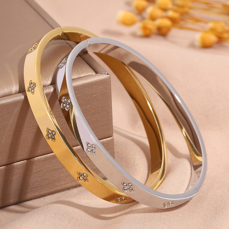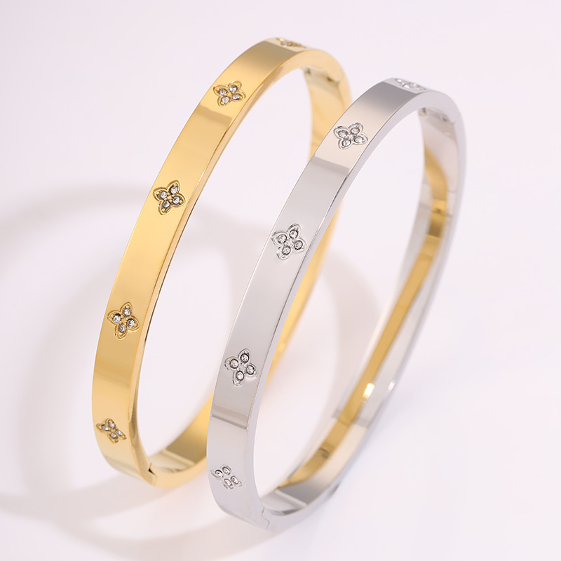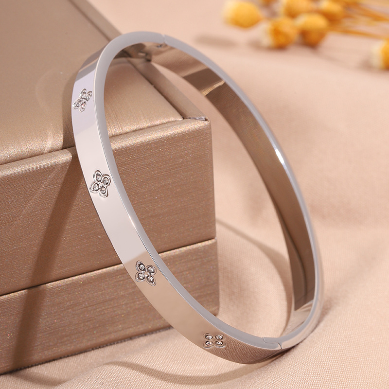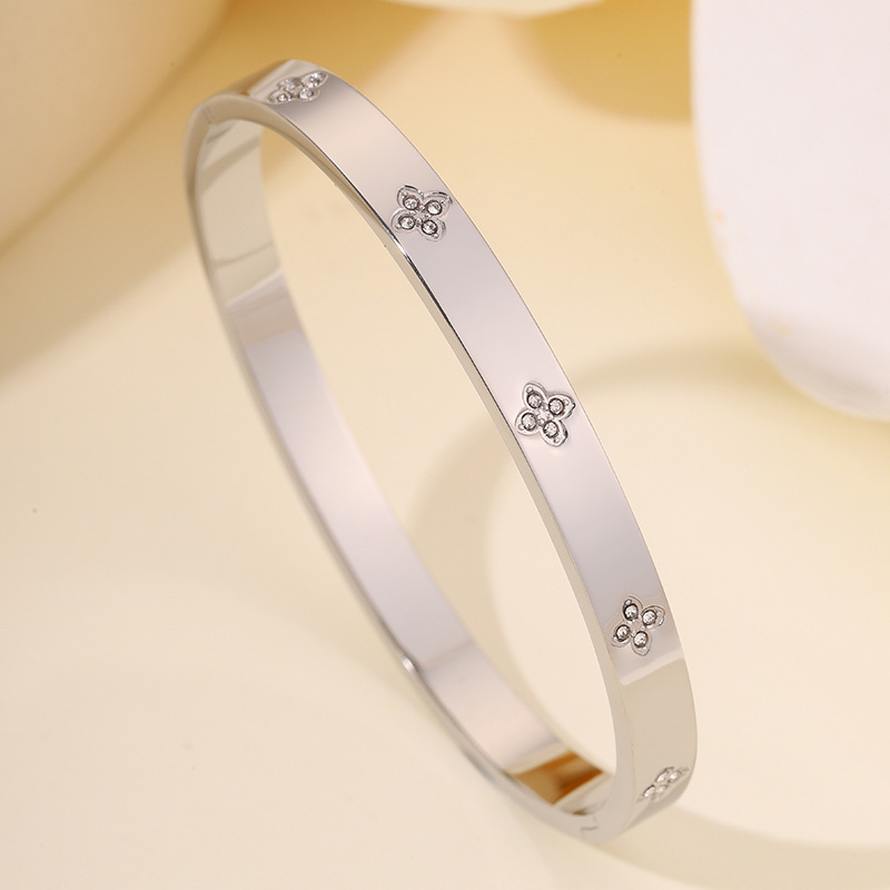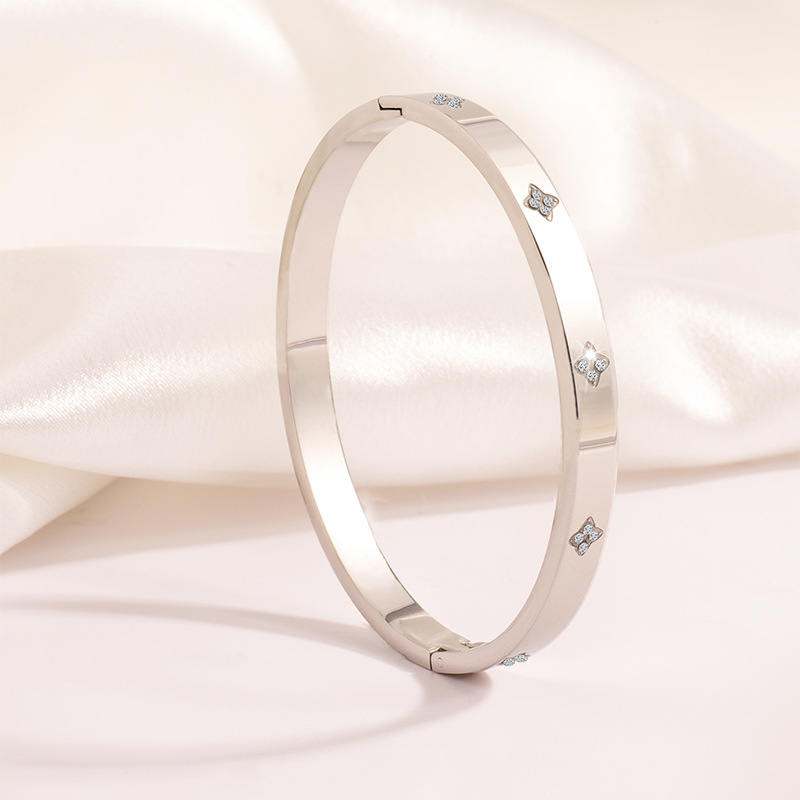 티타늄 스틸 팔찌 소녀의 하이 엔드 패션 라이트 럭셔리 간단한 스테인레스 스틸 럭키 잔디 다이아몬드 팔찌 커플 쥬얼리스토어 가기