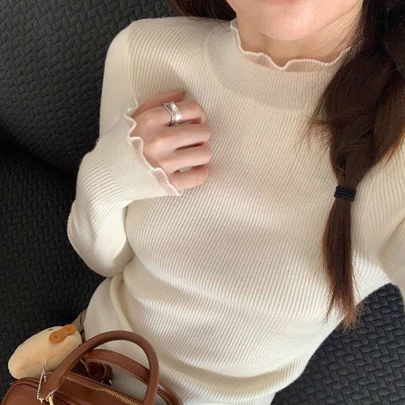 곰팡이 디자인과 부드러운 밀랍 탑이 있는 여성용 하프 터틀넥 2025 가을 겨울 바닥 스웨터