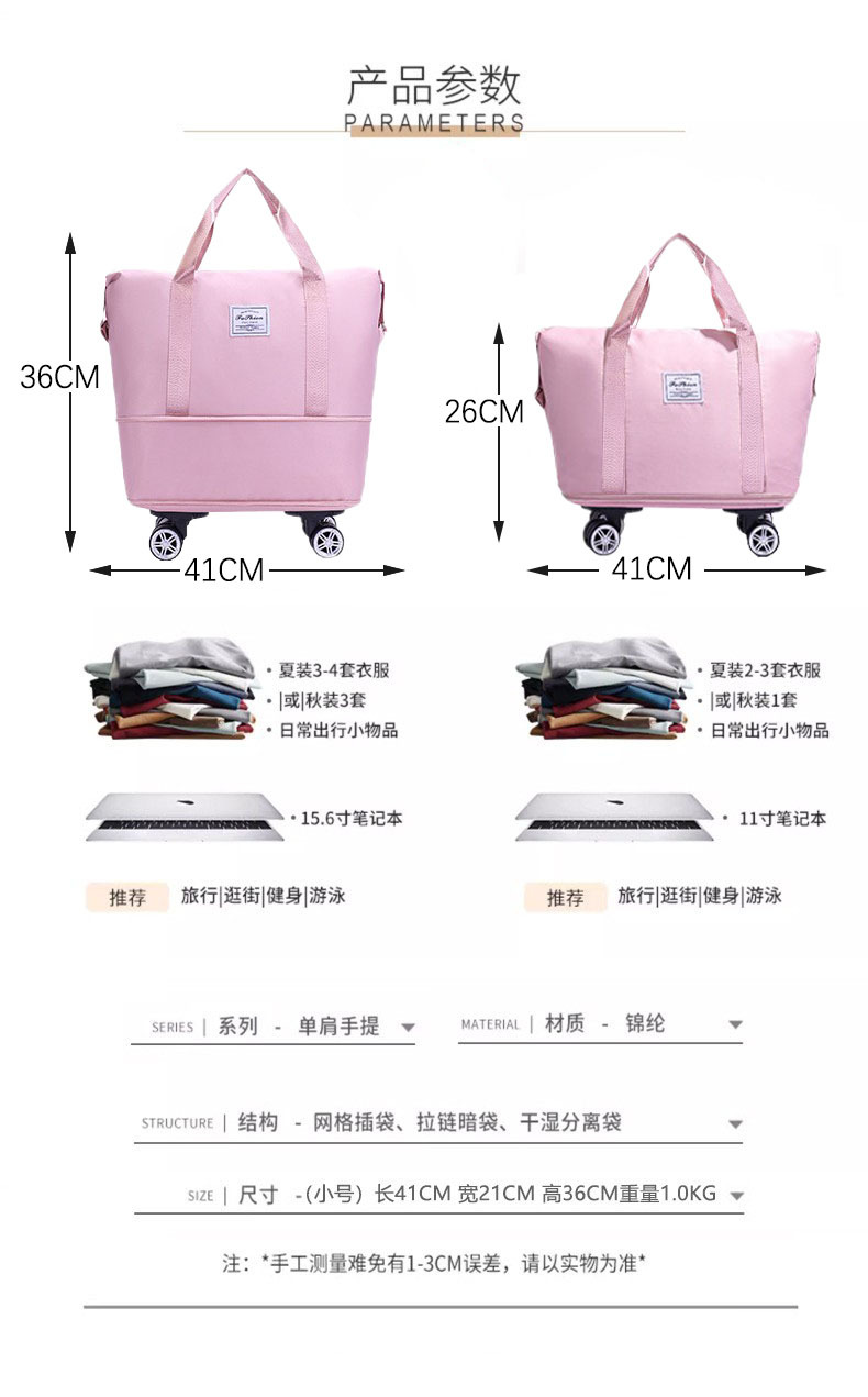 대학생 여행 가방 범용 휠 초대용량 건식 및 습식 분리 수하물 가방 경량 방수 보관 가방