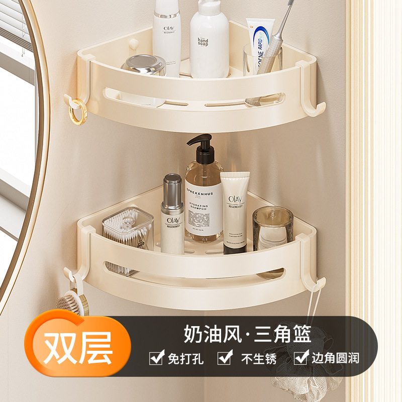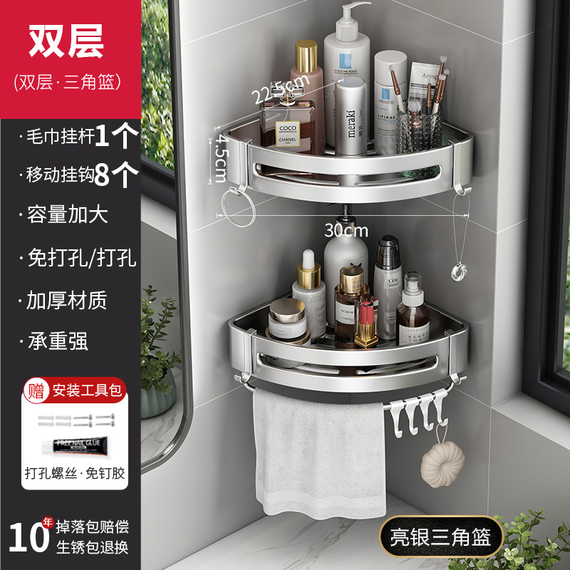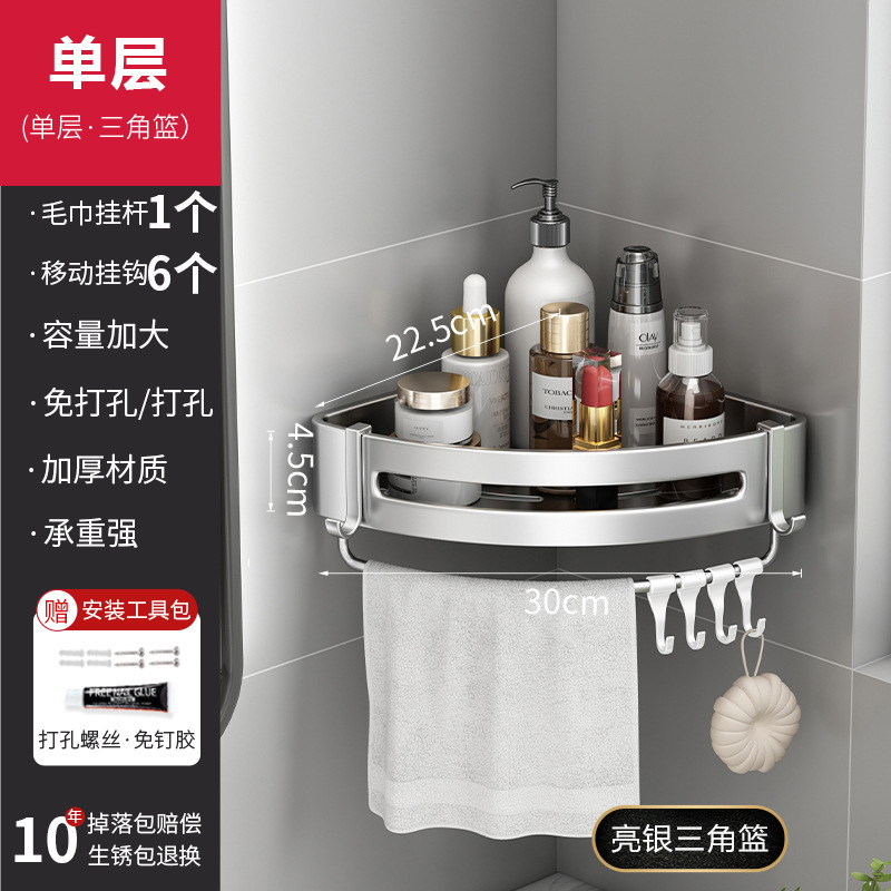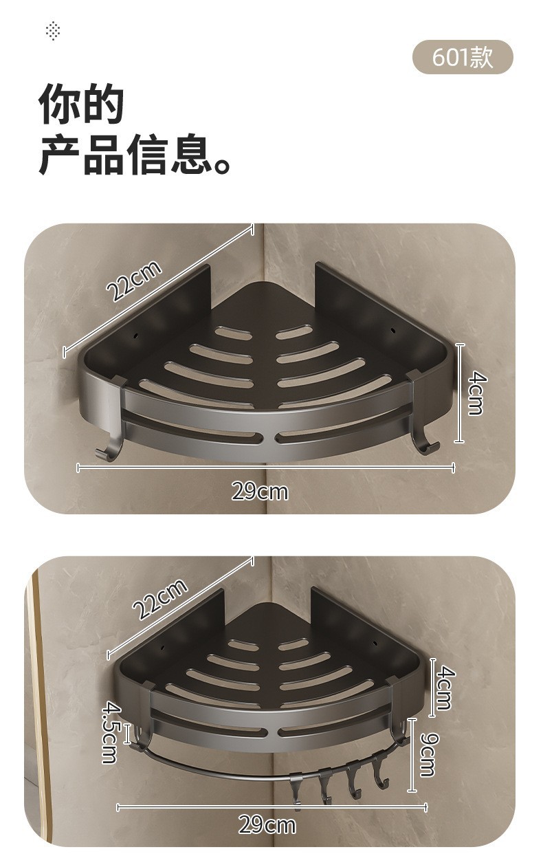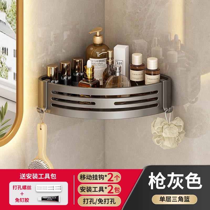 건 그레이 욕실 수납 랙 화장실 수납 랙 벽걸이 형 펀치없는 화장실 공간 알루미늄 삼각형 코너 선반스토어 가기