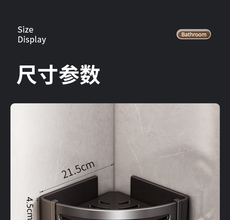 건 그레이 욕실 수납 랙 화장실 수납 랙 벽걸이 형 펀치없는 화장실 공간 알루미늄 삼각형 코너 선반