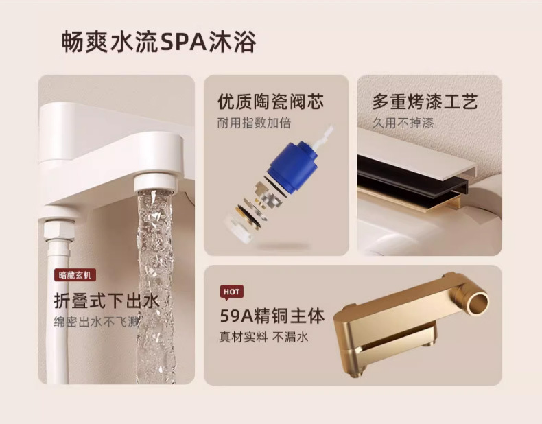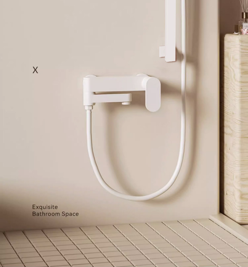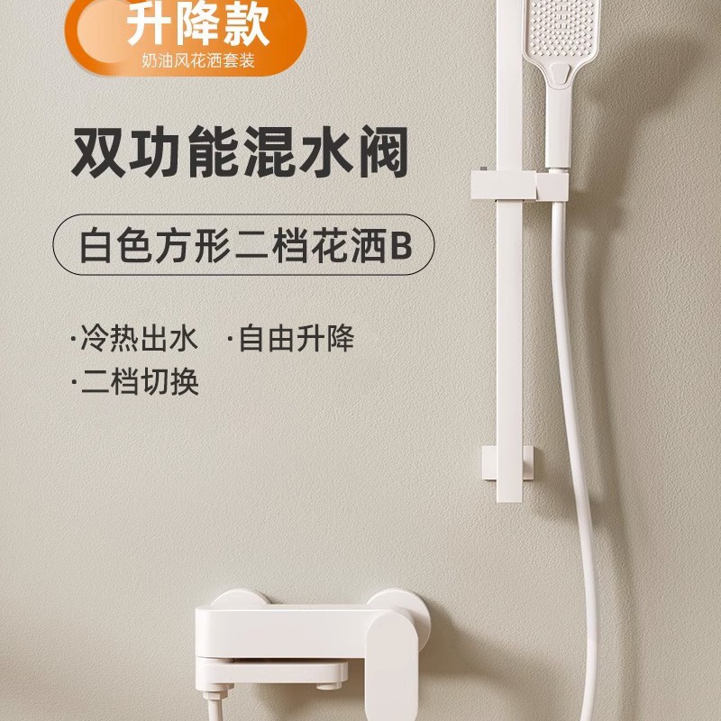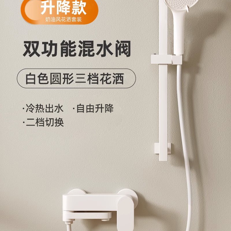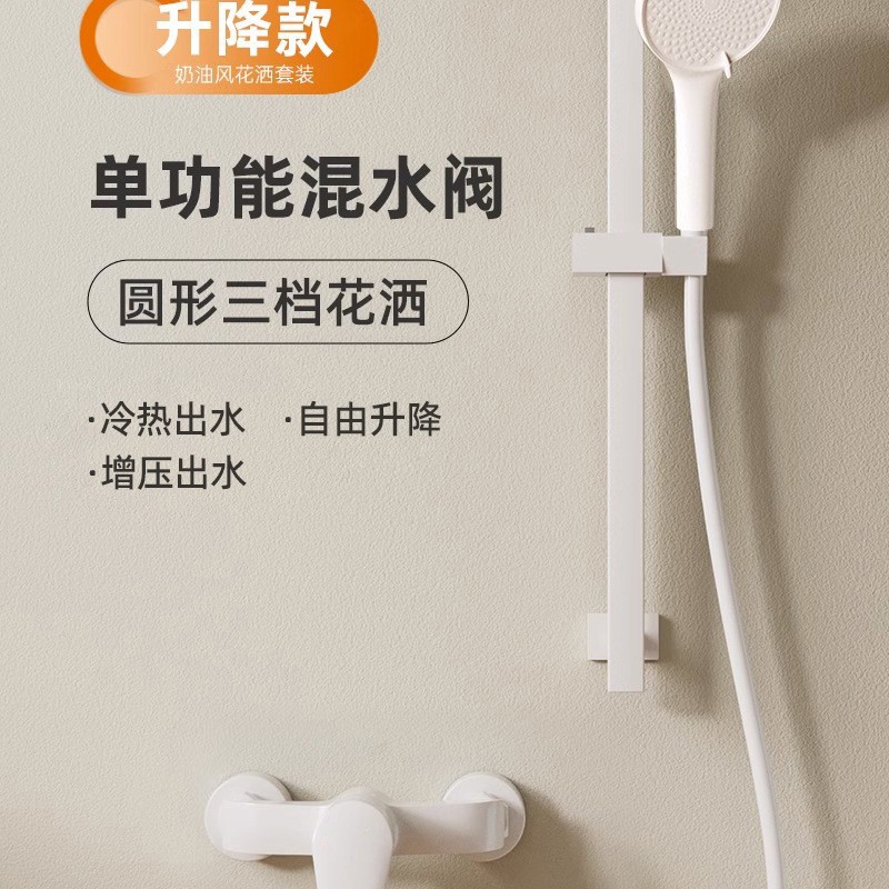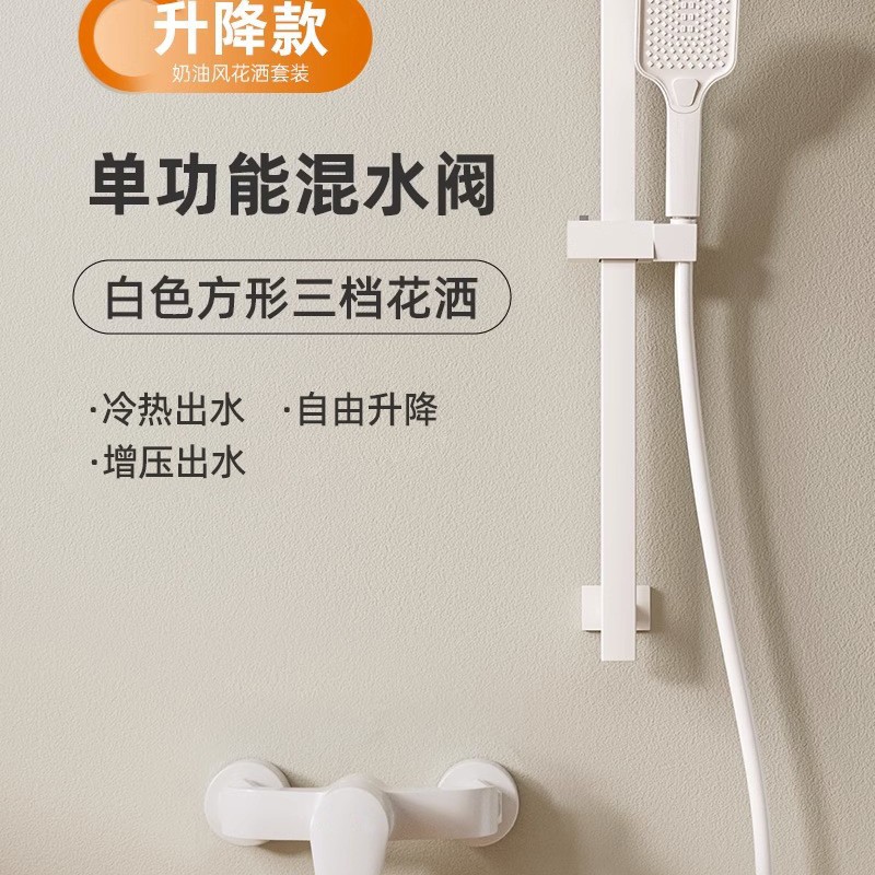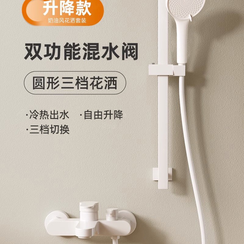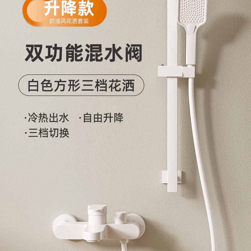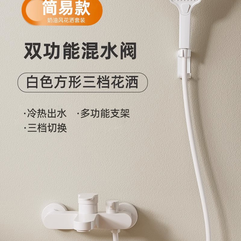 흰색 간단한 샤워 세트 모든 구리 샤워 미니멀리스트 비 탑 스프레이 분할 샤워 헤드 욕실 노즐 크림 에어스토어 가기