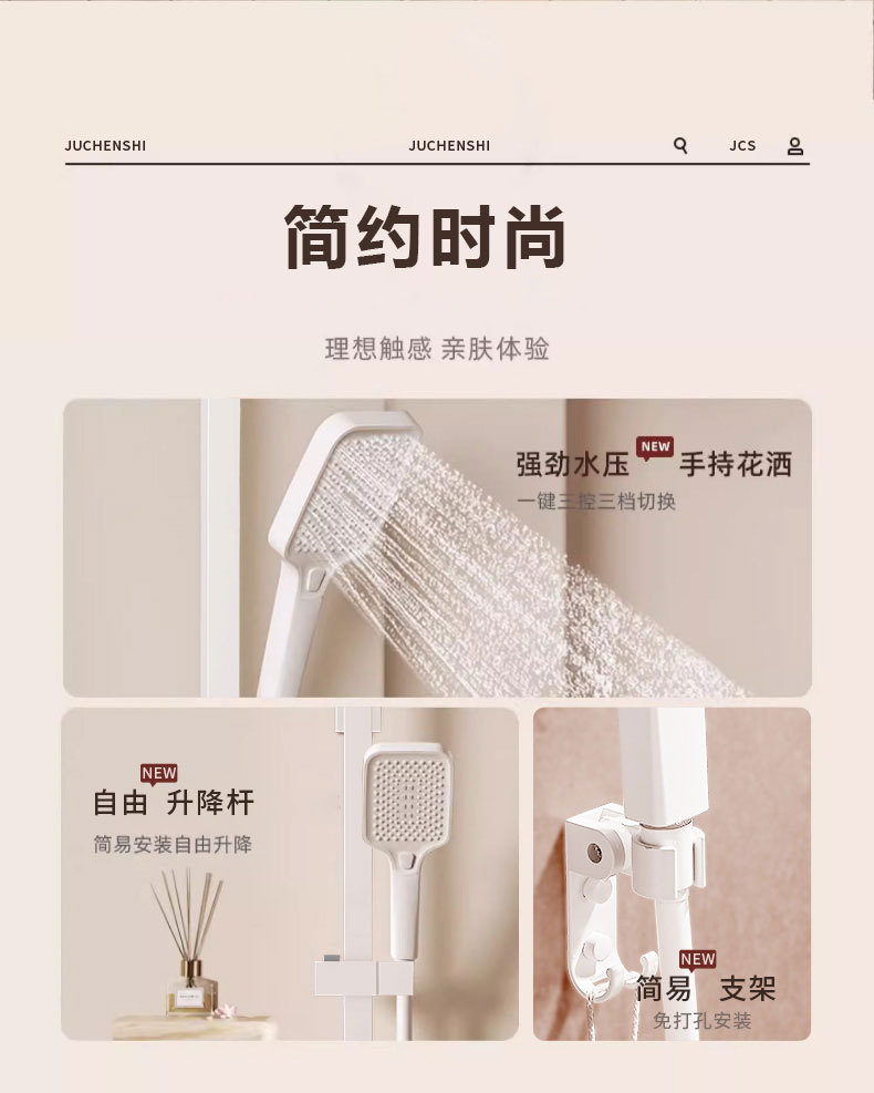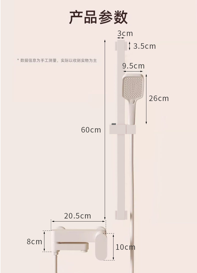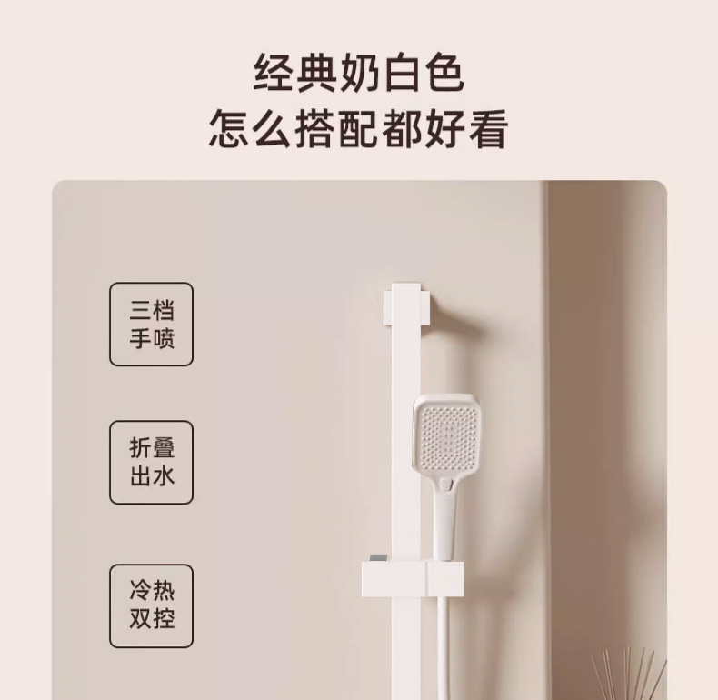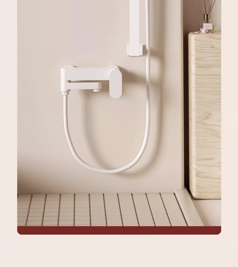 흰색 간단한 샤워 세트 모든 구리 샤워 미니멀리스트 비 탑 스프레이 분할 샤워 헤드 욕실 노즐 크림 에어