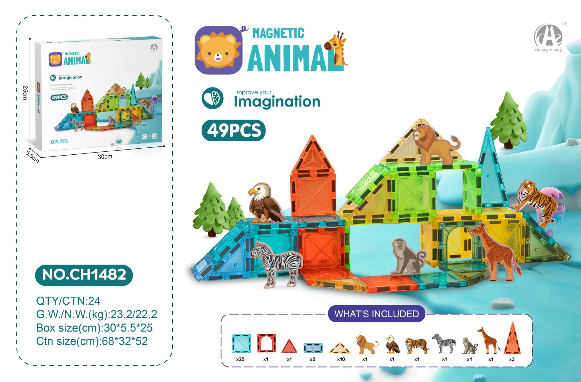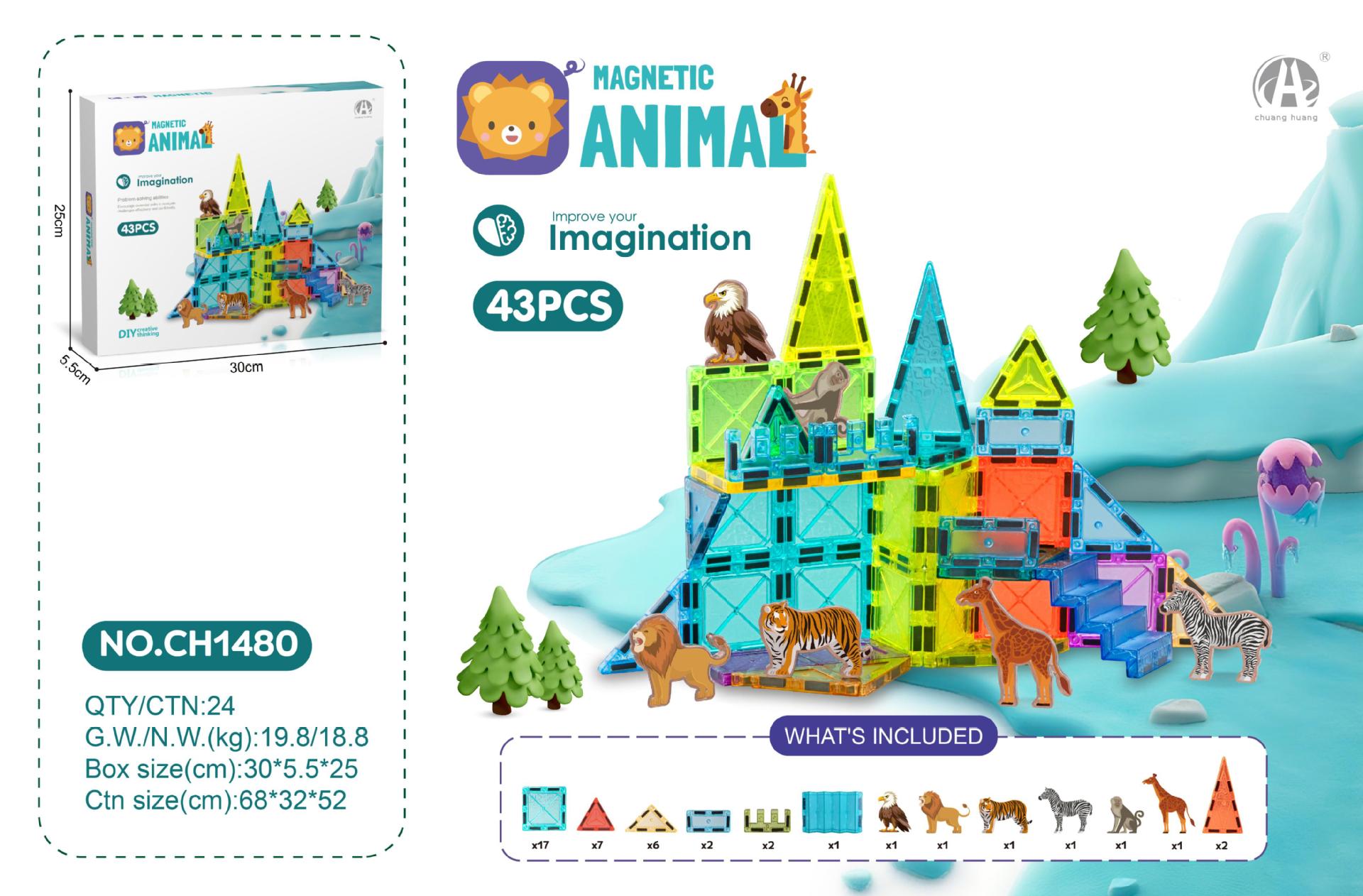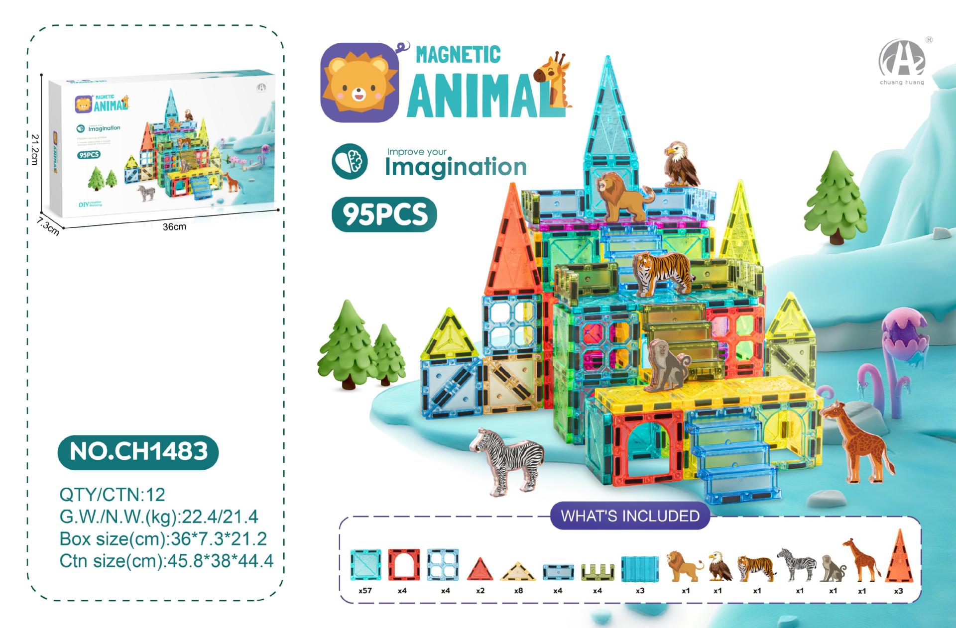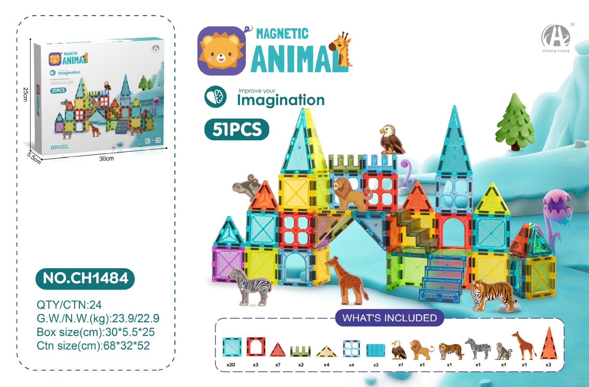 • 7.5CM 스타 다이아몬드 자석 블록 19PCS (야생 동물 테마)