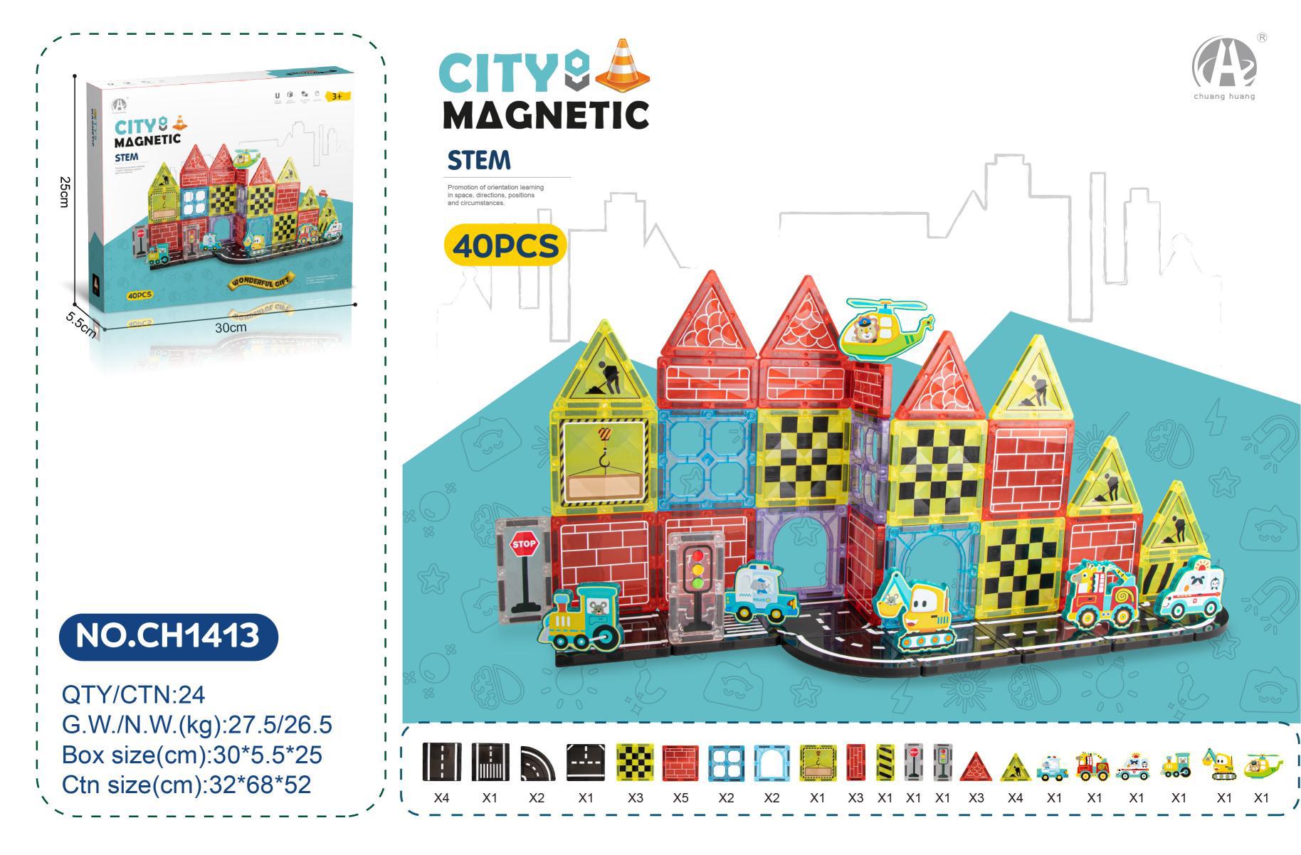 • 7.5C 엔지니어링 도로 테마 자석 시트 빌딩 블록 40PCS