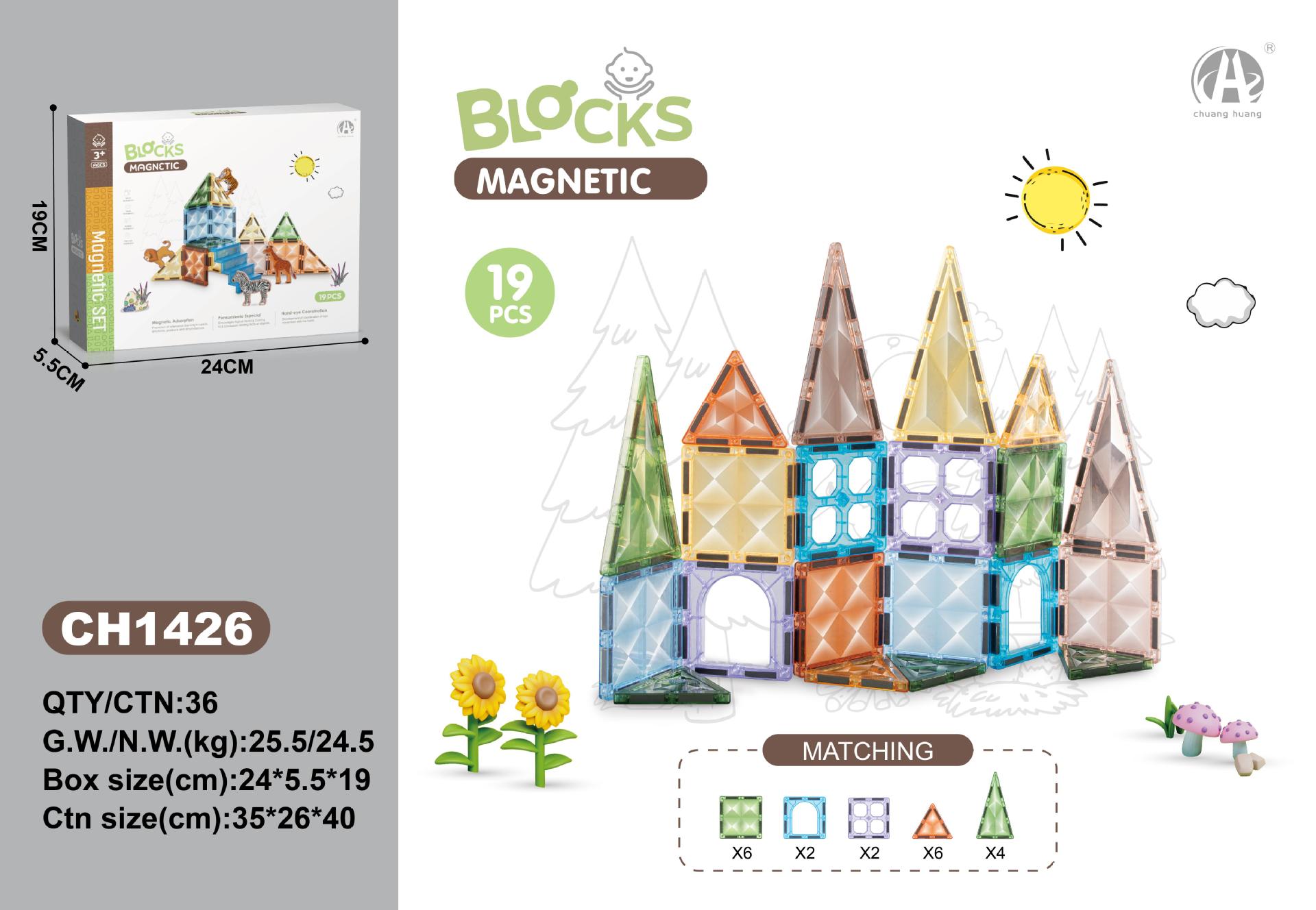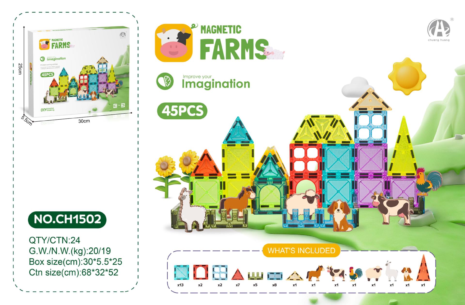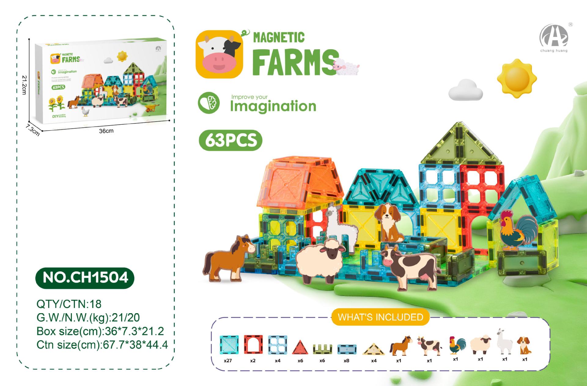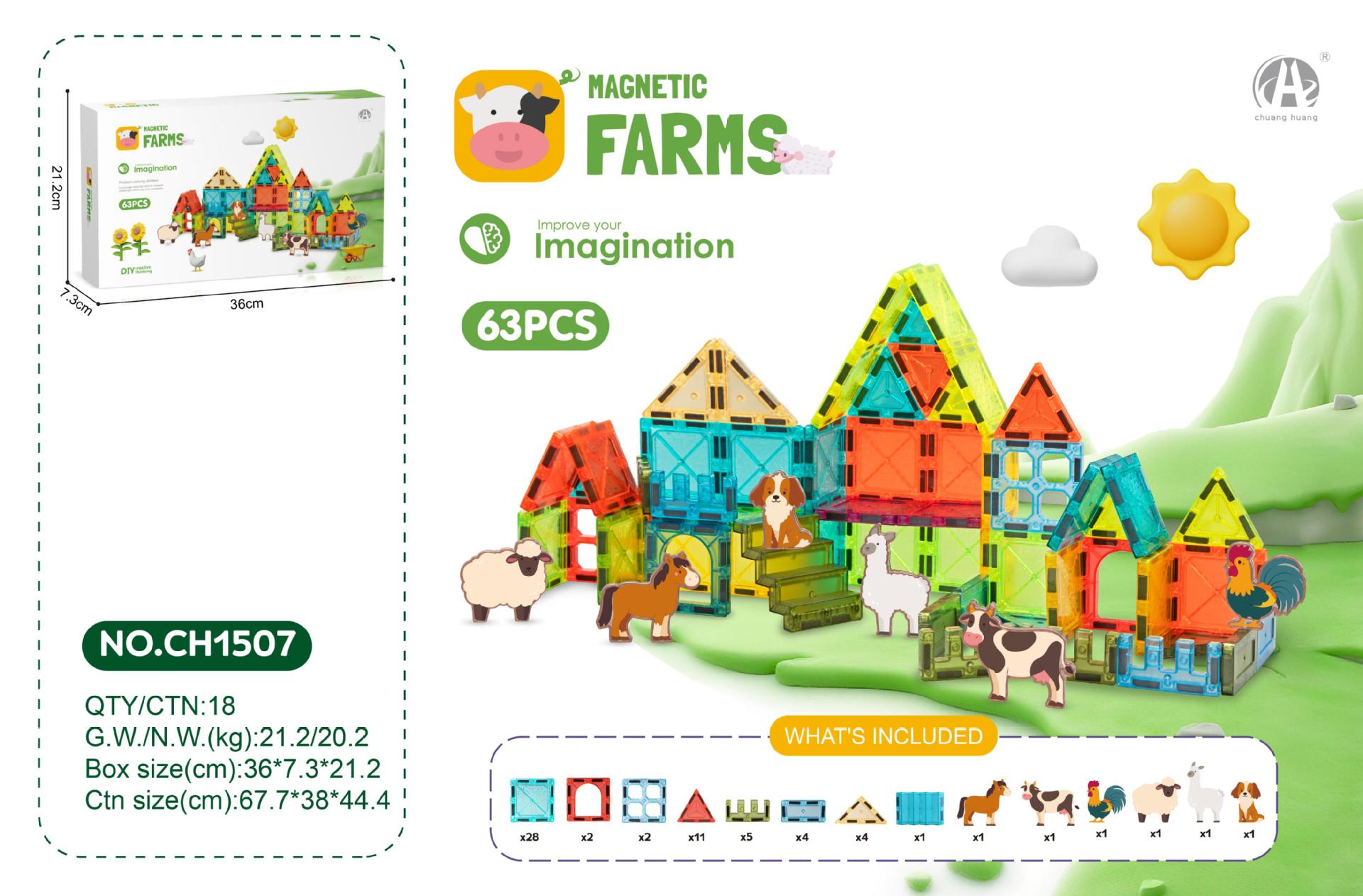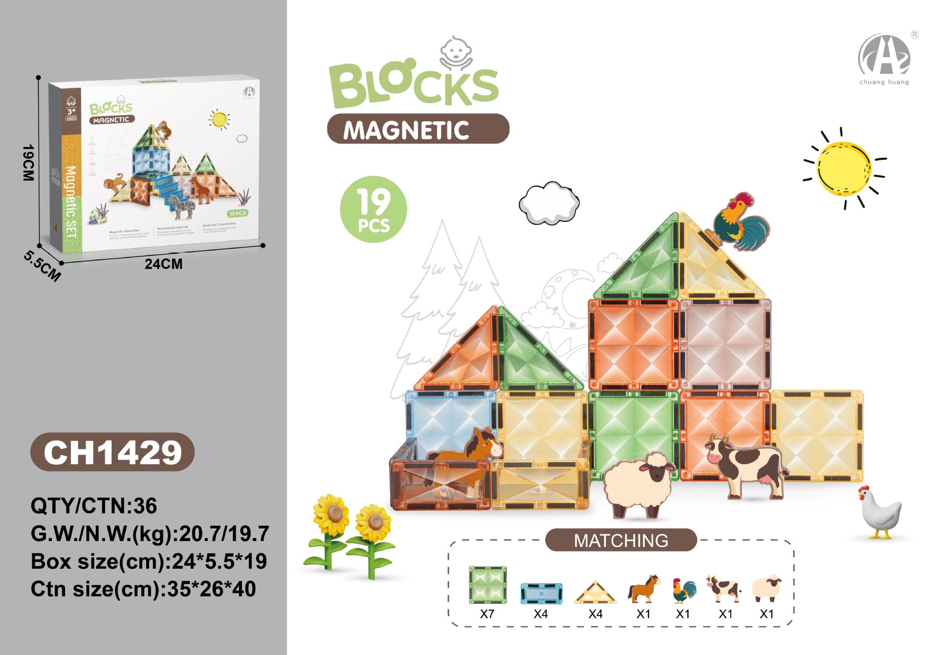 • 7.5CM 스타 다이아몬드 자석 블록 19PCS (농장 동물 테마)