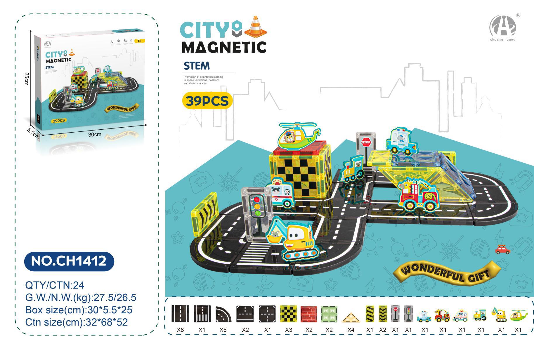 • 7.5C 엔지니어링 도로 테마 자석 시트 빌딩 블록 39PCS