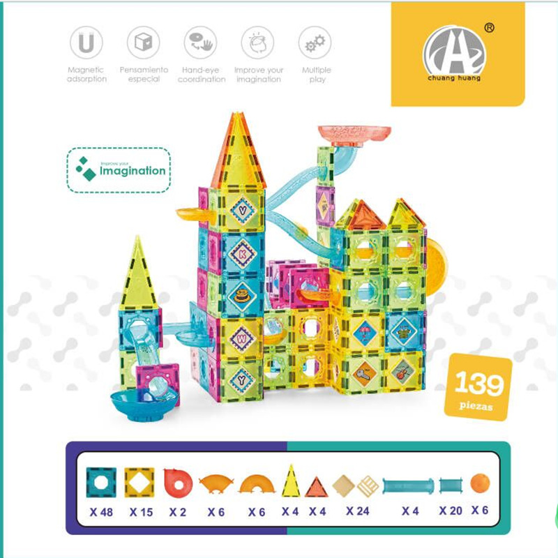 크로스 국경 아마존 자기 트랙 볼 퍼즐 빌딩 블록 생각 어린이 장난감 조립 DIY 세트 구축