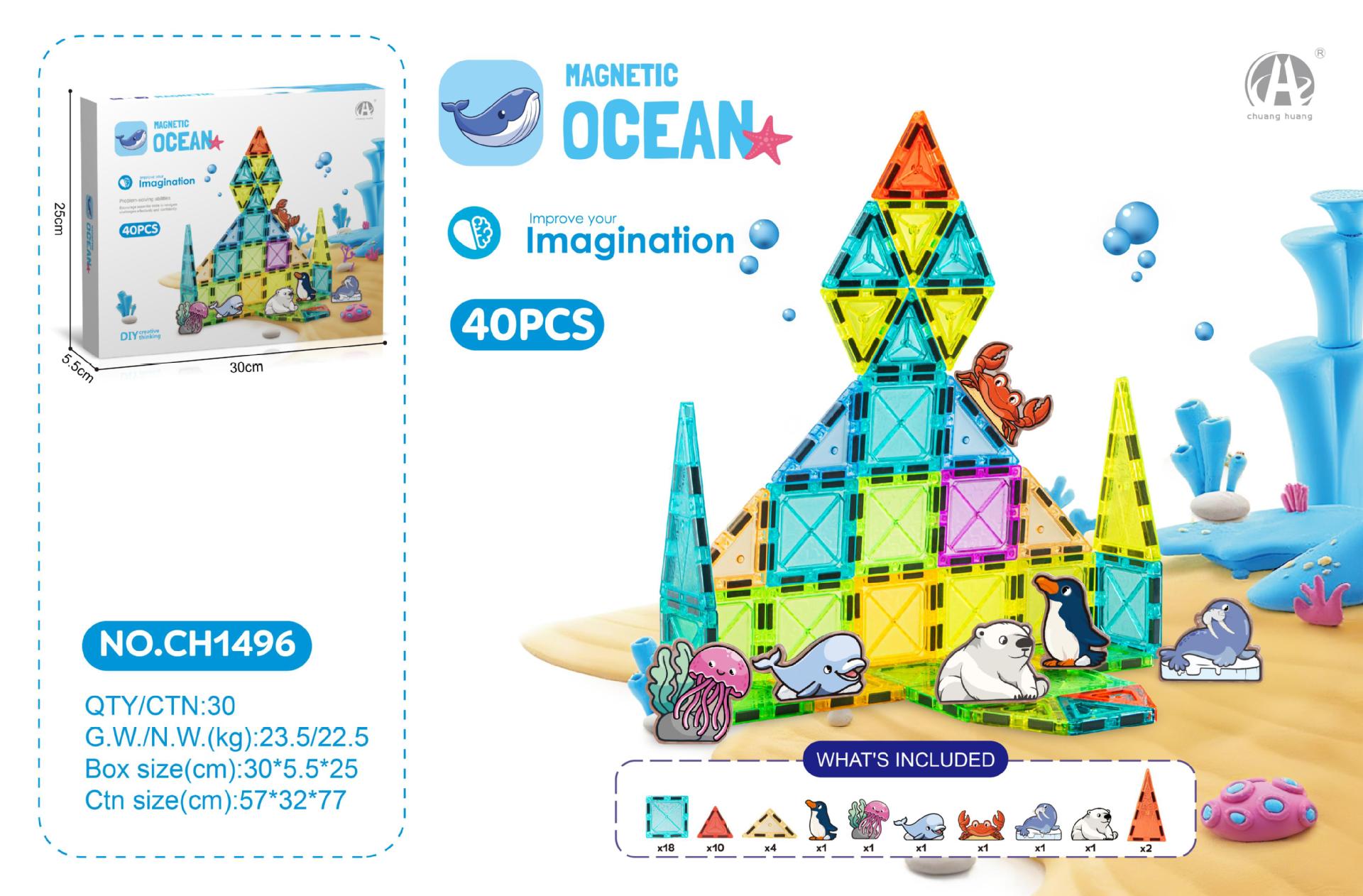 • 5.5CM 자석 시트 40PSC (해양 동물 테마)