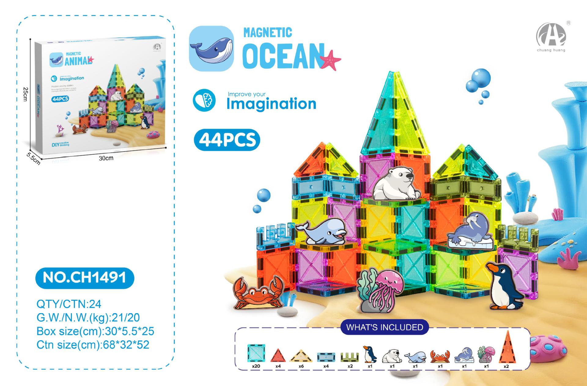 • 5.5CM 자석 시트 44PSC (해양 동물 테마)