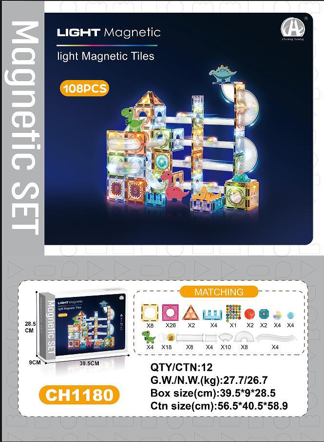 • (공룡 테마) 7.5CM 스타 다이아몬드 라이트 트랙 볼 마그네틱 시트 108PCS