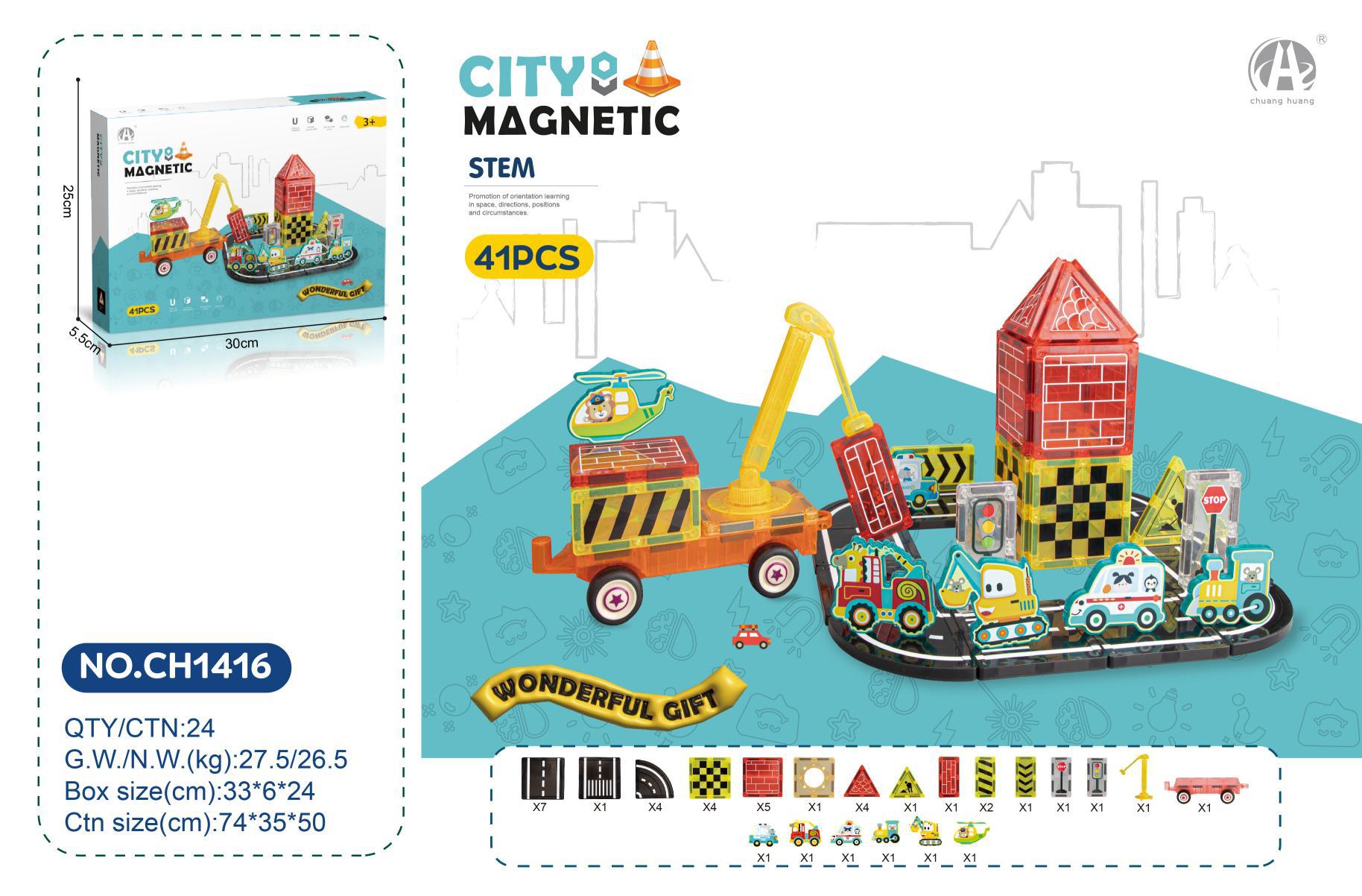 • 7.5C 엔지니어링 도로 테마 자석 시트 빌딩 블록 41PCS