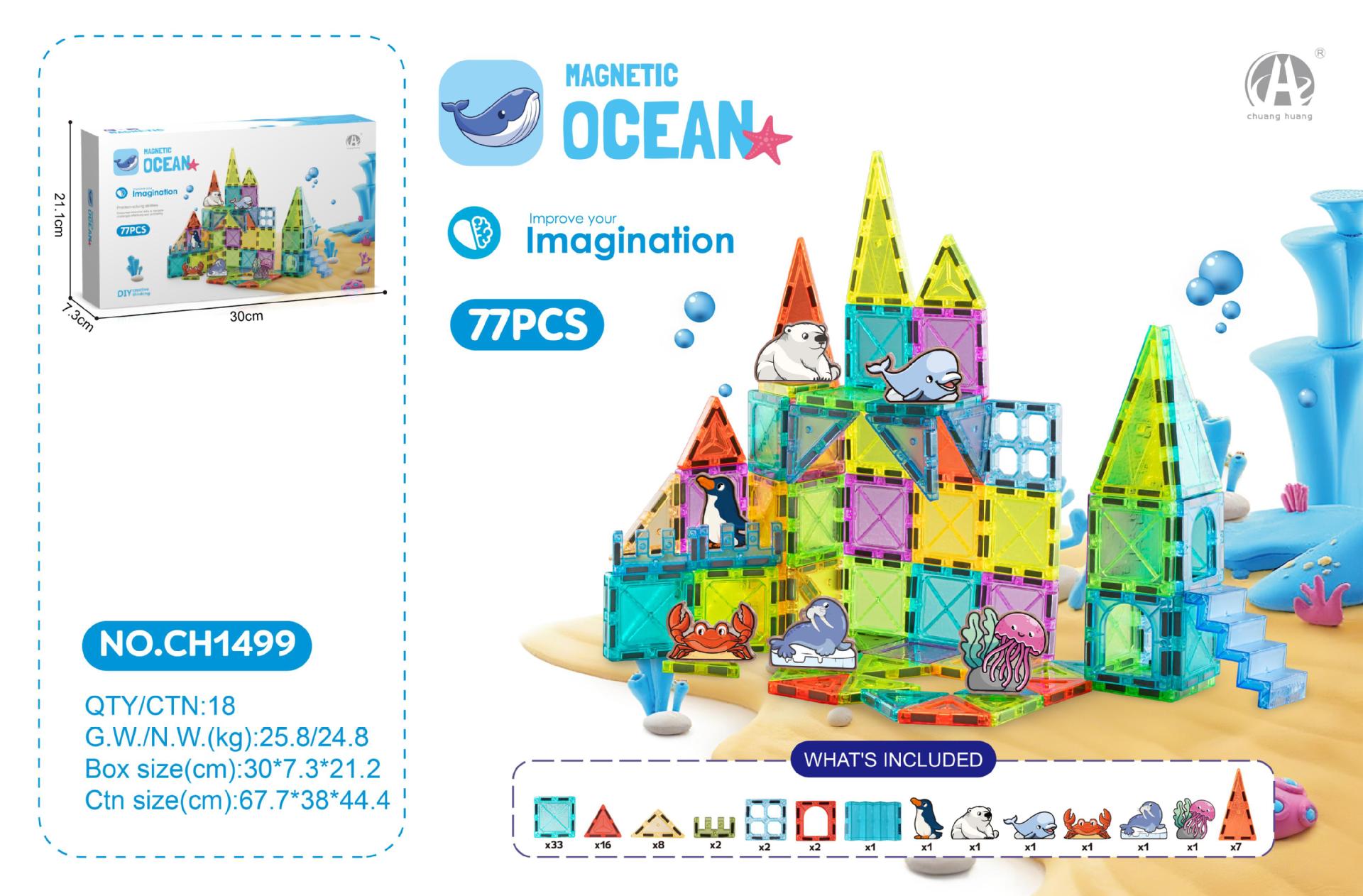 • 5.5CM 자석 시트 77PSC(해양 동물 테마)