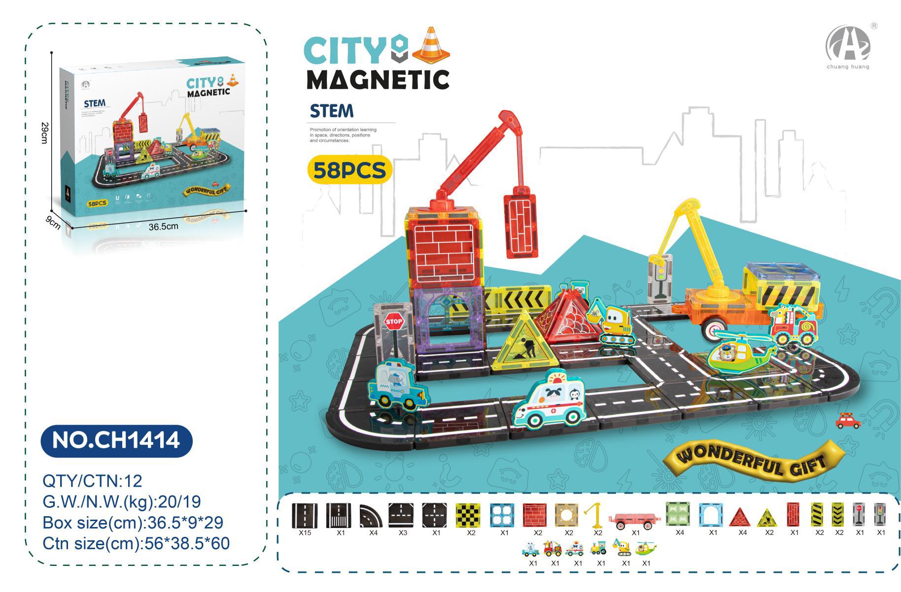 • 7.5C 엔지니어링 도로 테마 자석 블록 58PCS