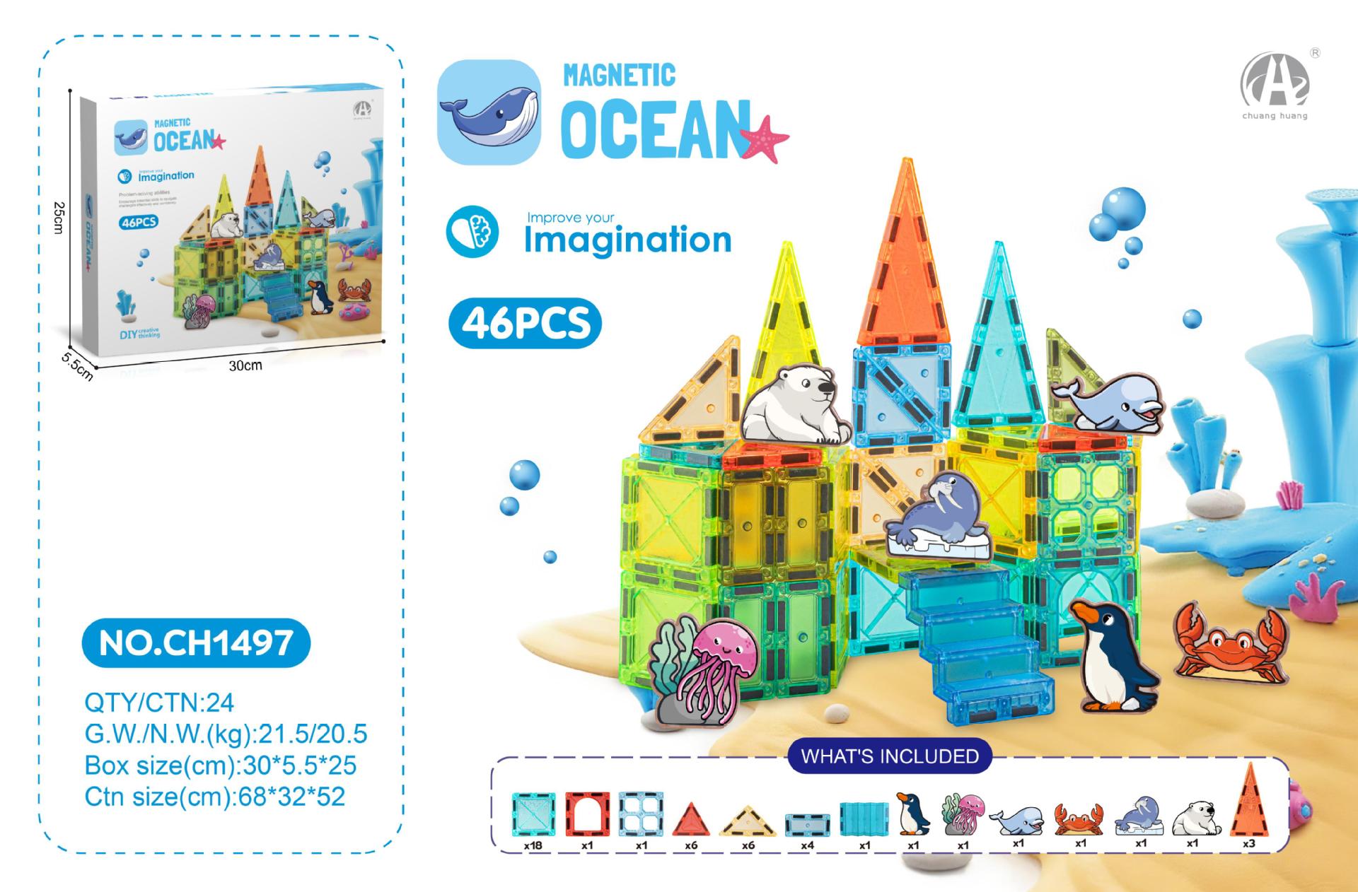 • 5.5CM 자석 시트 46PSC (해양 동물 테마)
