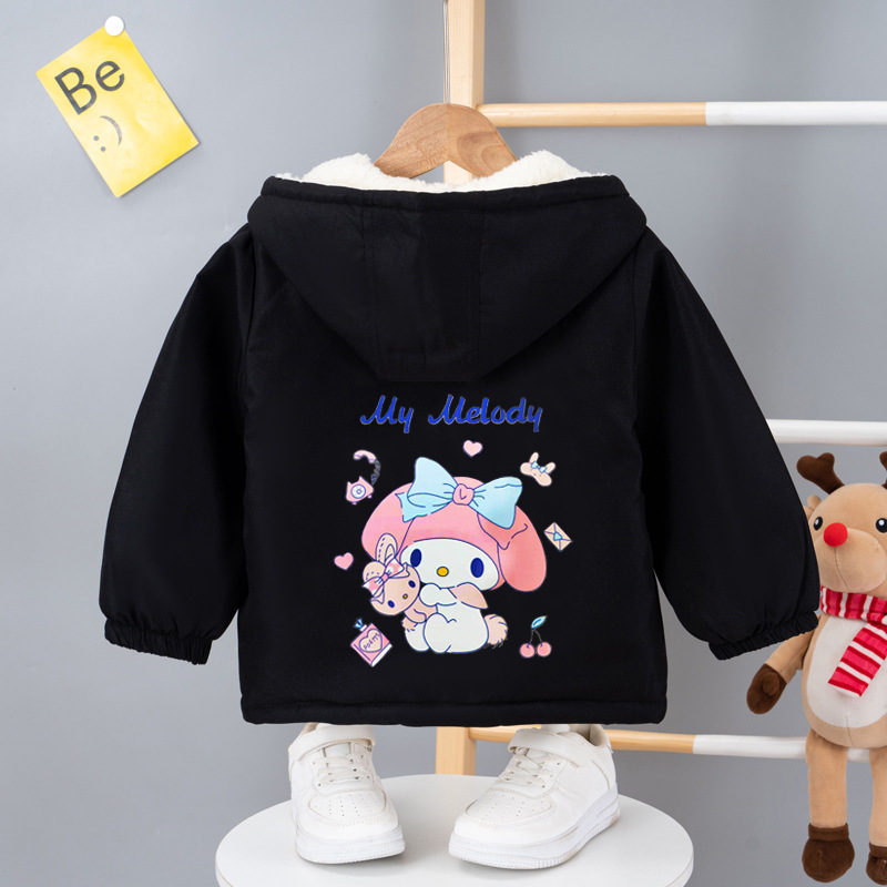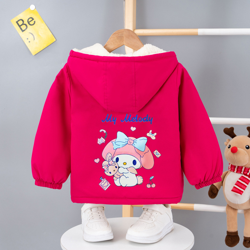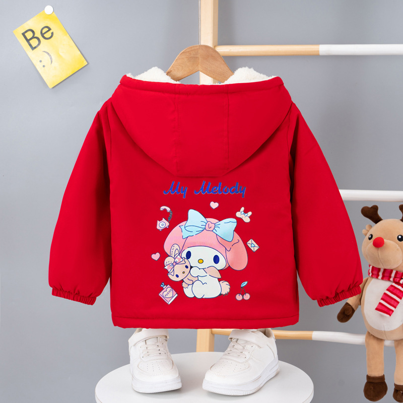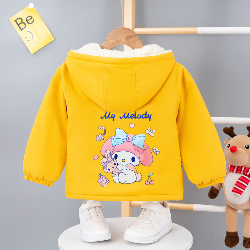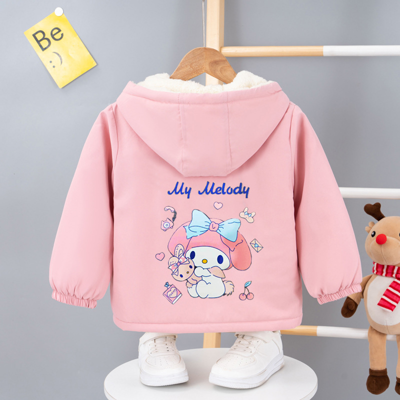 여아 기모 두꺼운 코트 2023 겨울 새로운 여아 메를로 면 코트 짧은 여아 후드 면 코트스토어 가기