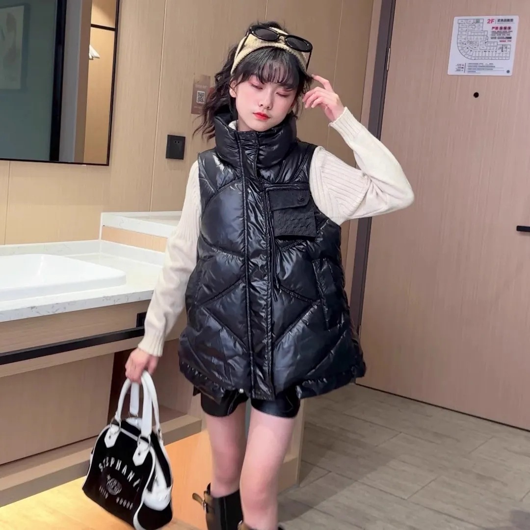 인터넷 연예인 가을과 겨울 소녀 다운 여자를위한 면 조끼 재킷 큰 아이들 서양 스타일 밝은 얼굴 세척 무료 유행 도자기 조끼스토어 가기