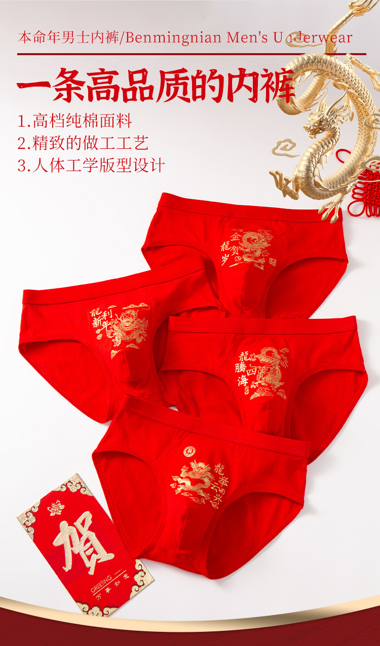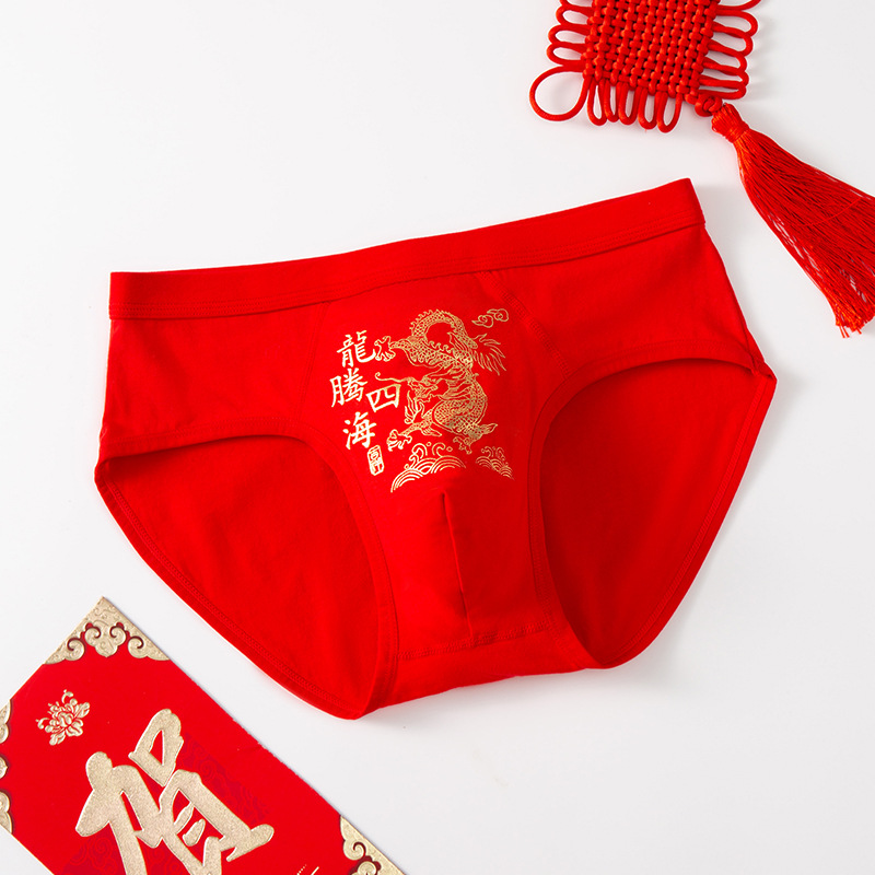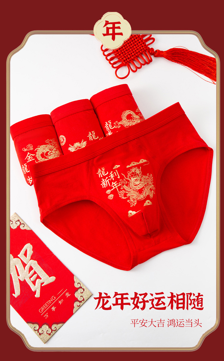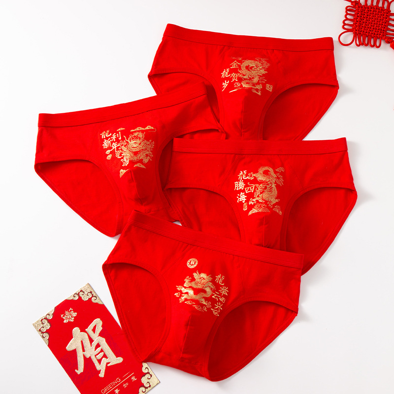 2025 가을 겨울 남성 속옷 새해 빨간색 생년월일 중간 허리 프린트 순면 삼각팬티 순면 통기성스토어 가기