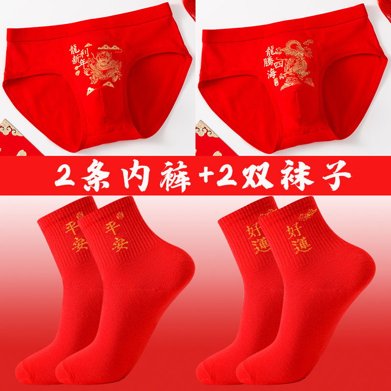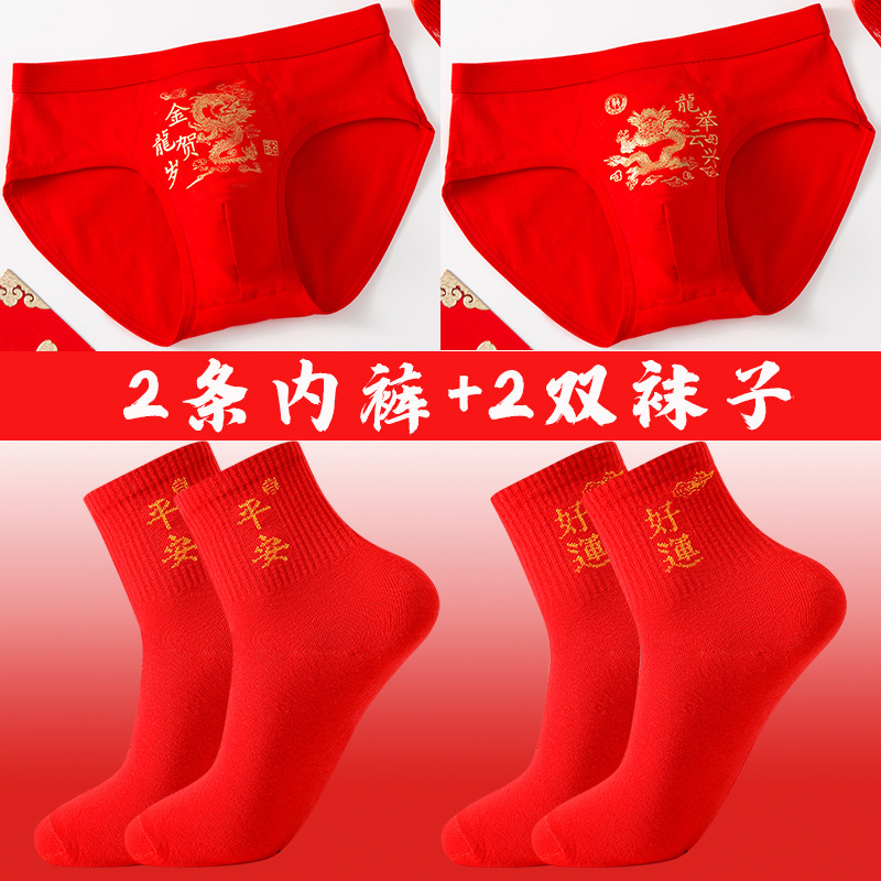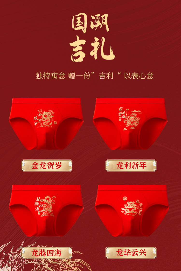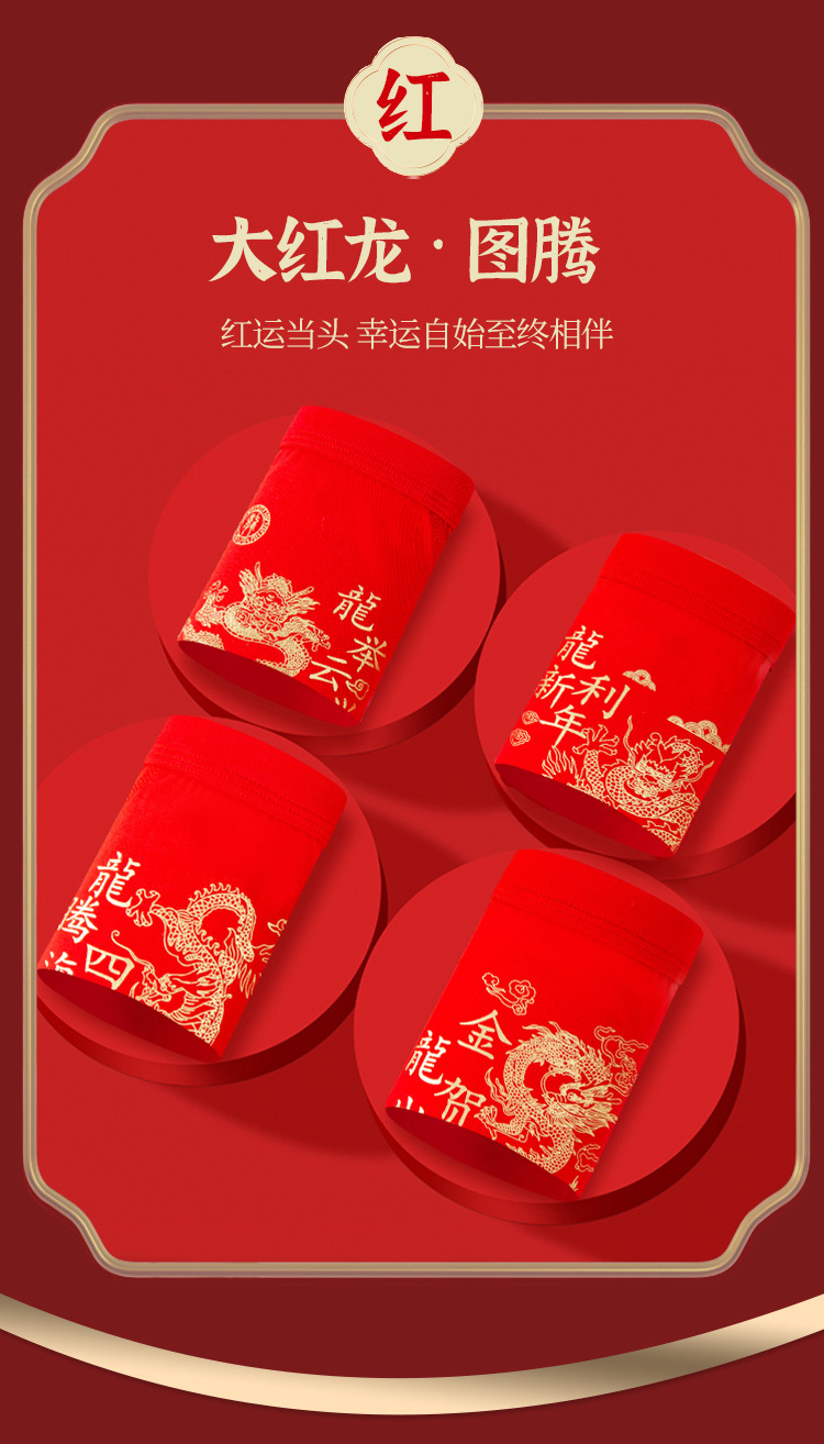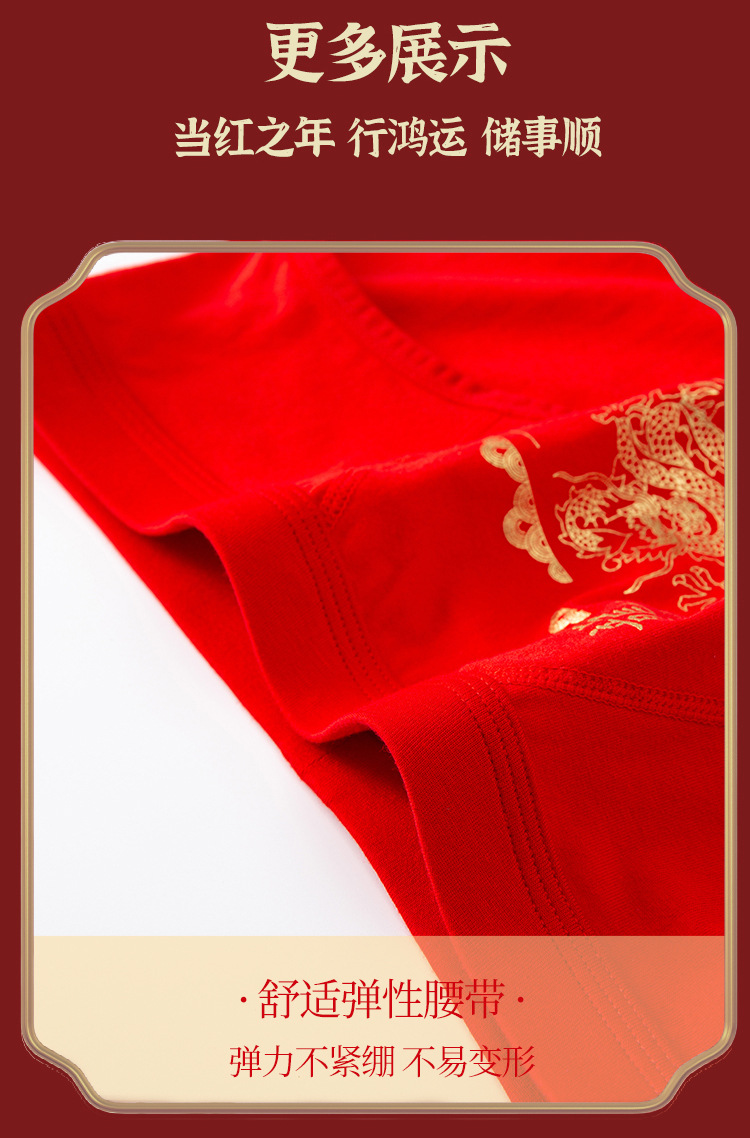 2025 가을 겨울 남성 속옷 새해 빨간색 생년월일 중간 허리 프린트 순면 삼각팬티 순면 통기성스토어 가기