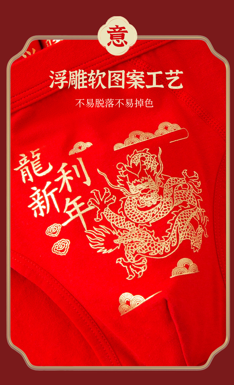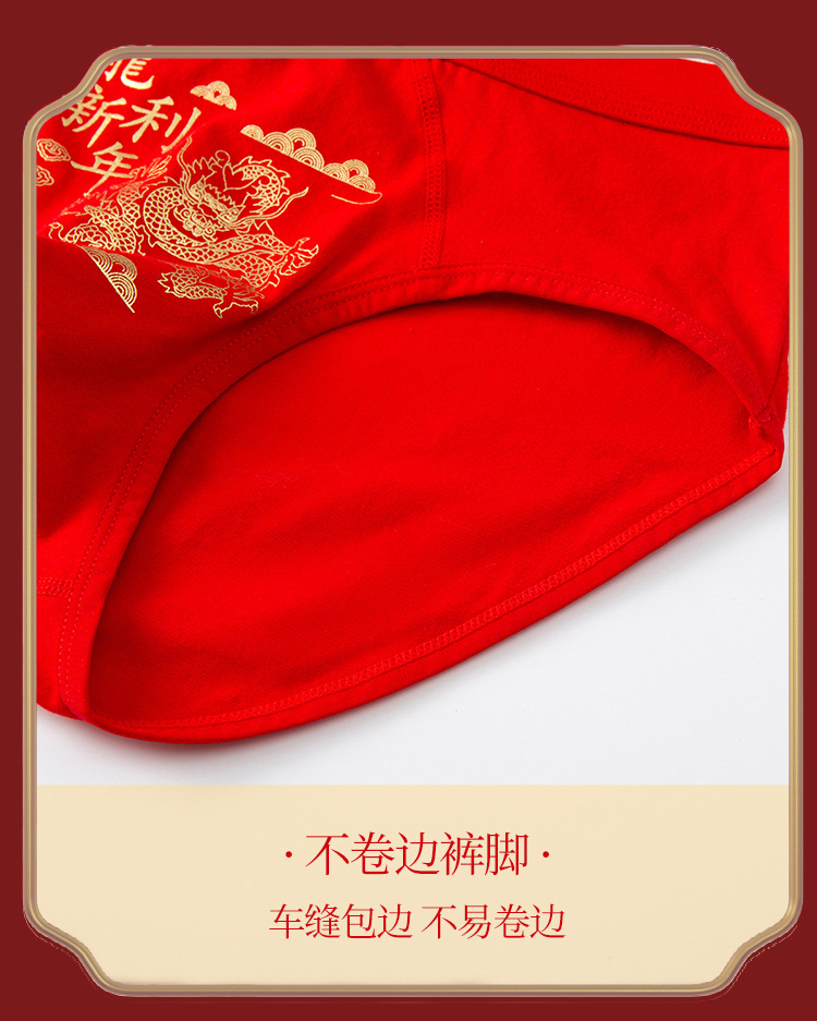 2025 가을 겨울 남성 속옷 새해 빨간색 생년월일 중간 허리 프린트 순면 삼각팬티 순면 통기성