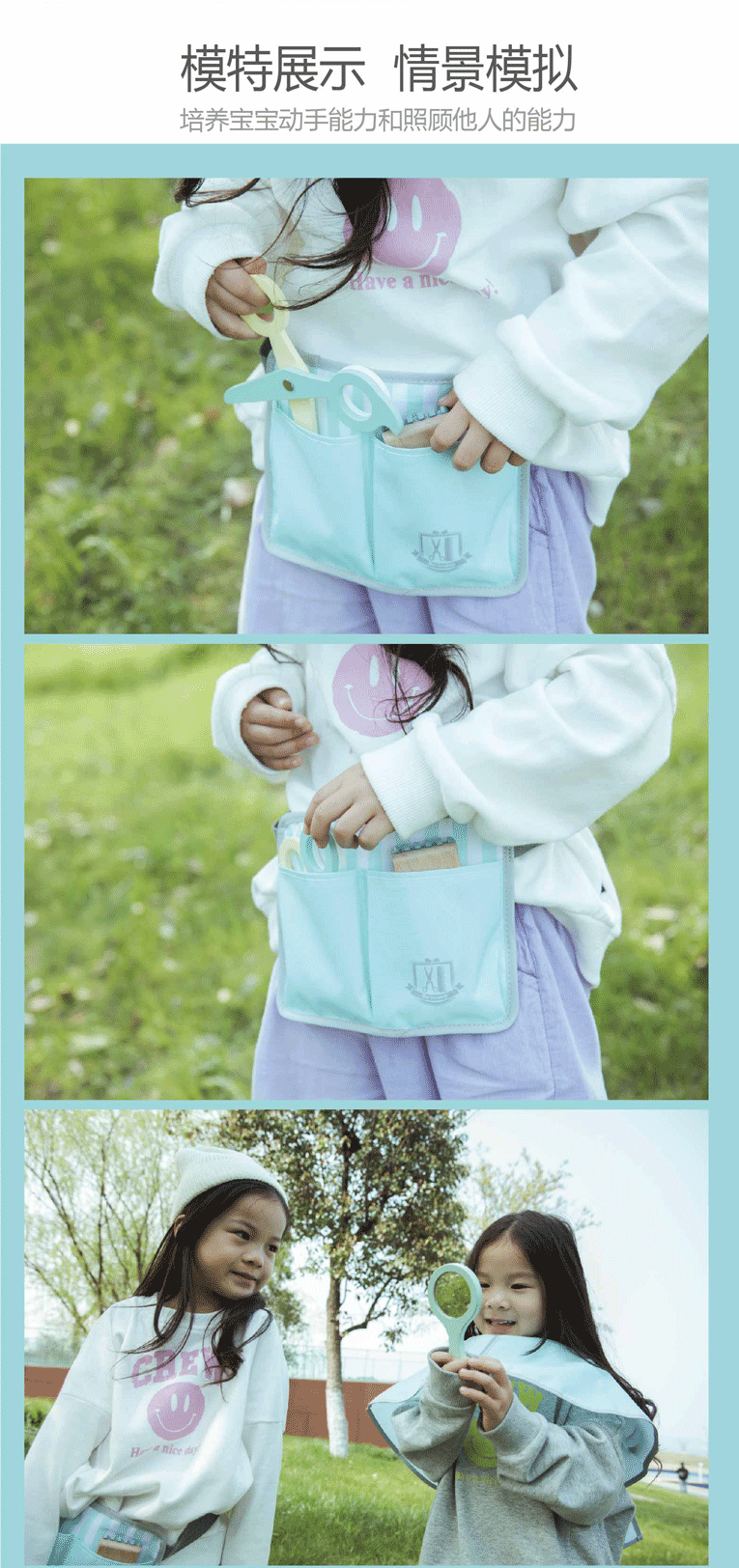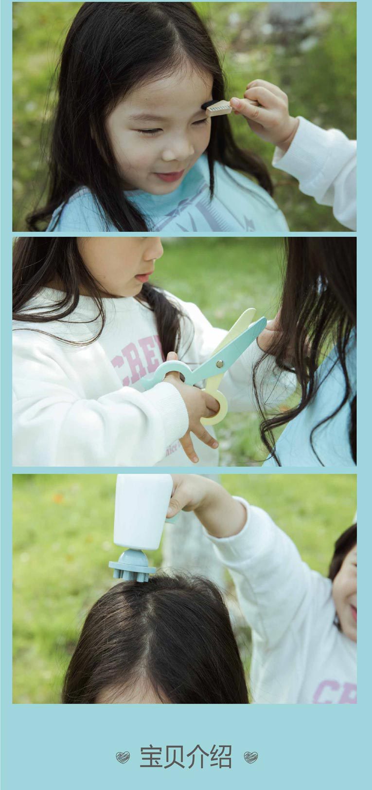 이발사 장난감 나무 세트 어린이 선물 시뮬레이션 가위 헤어 드라이어 이발사 도구 아기 역할 놀이스토어 가기