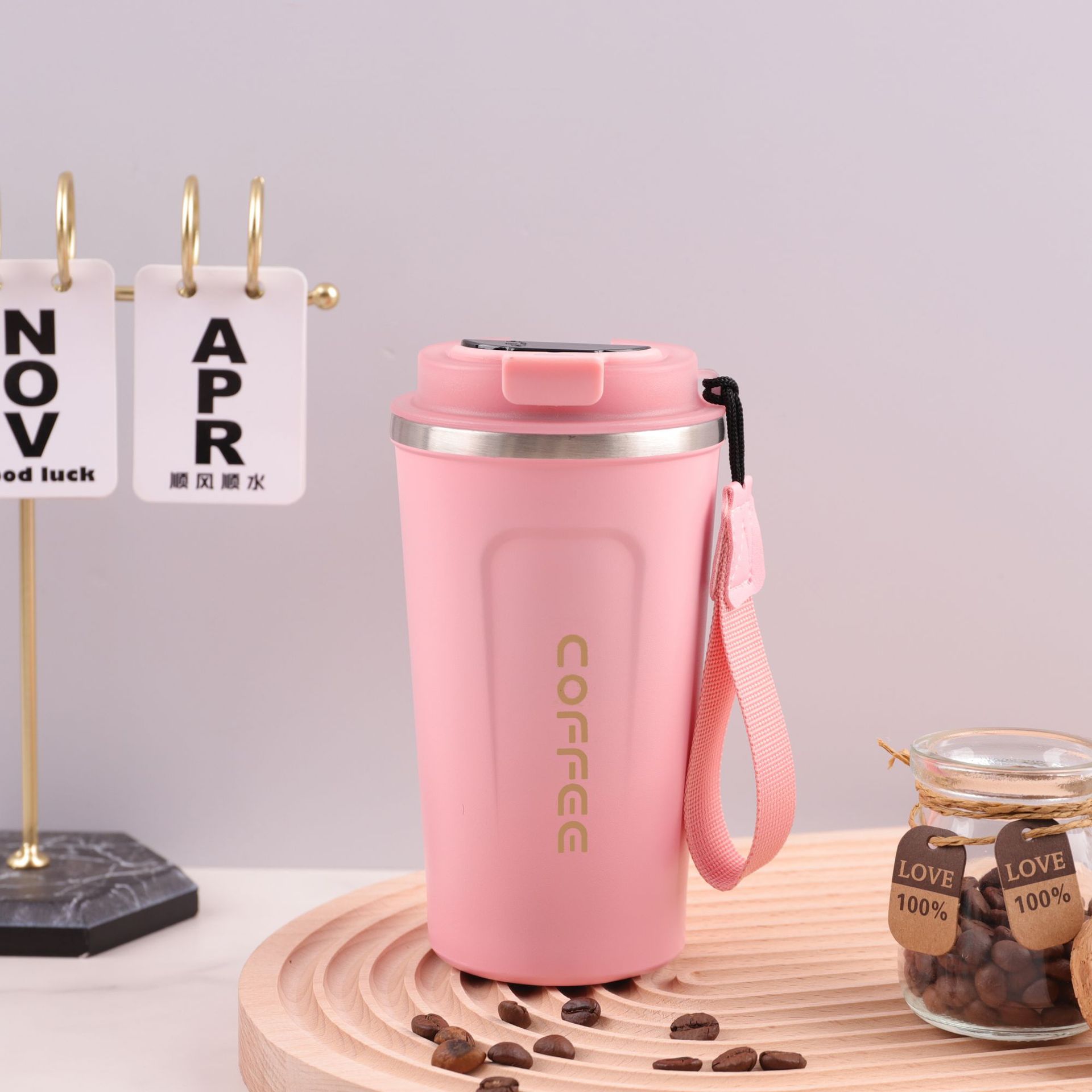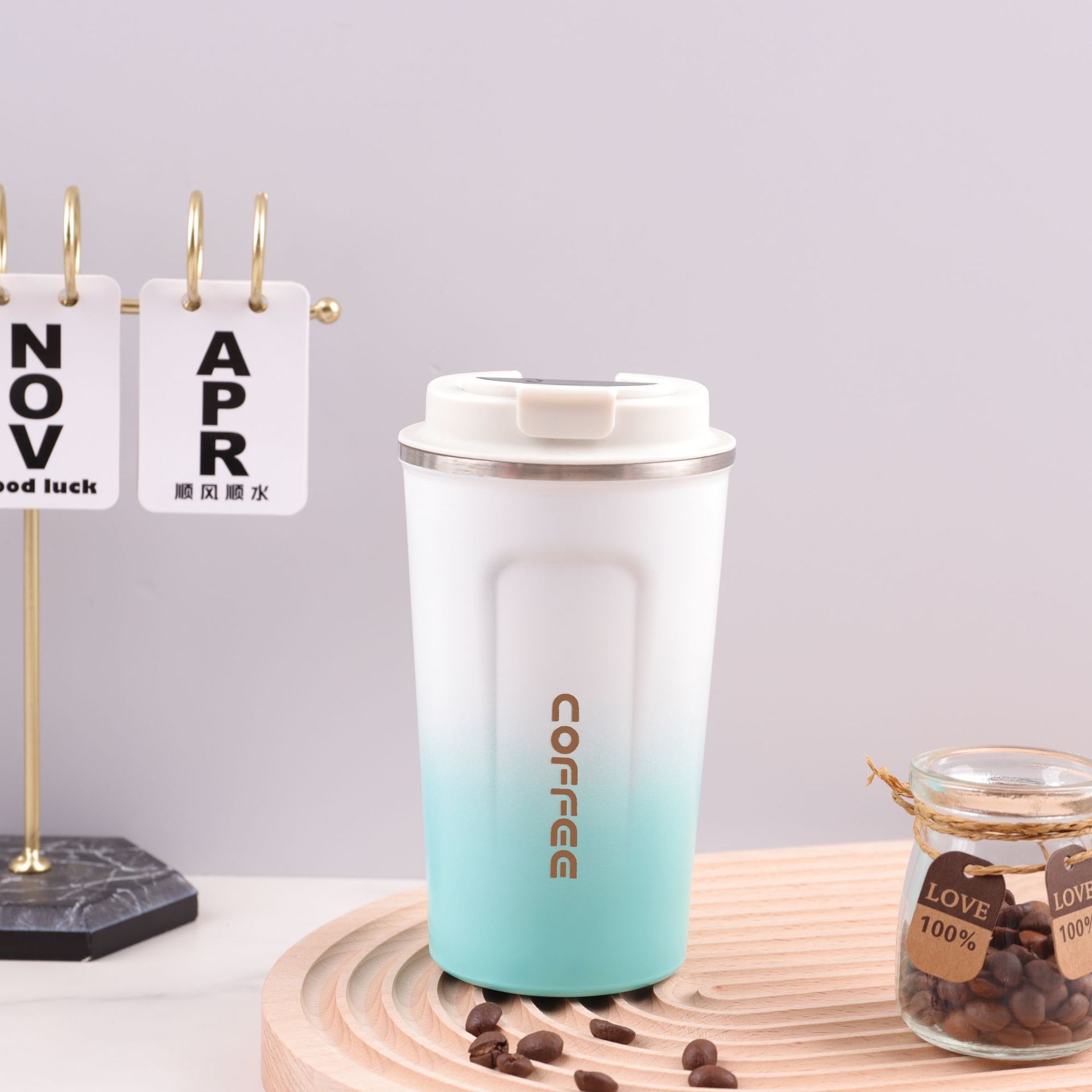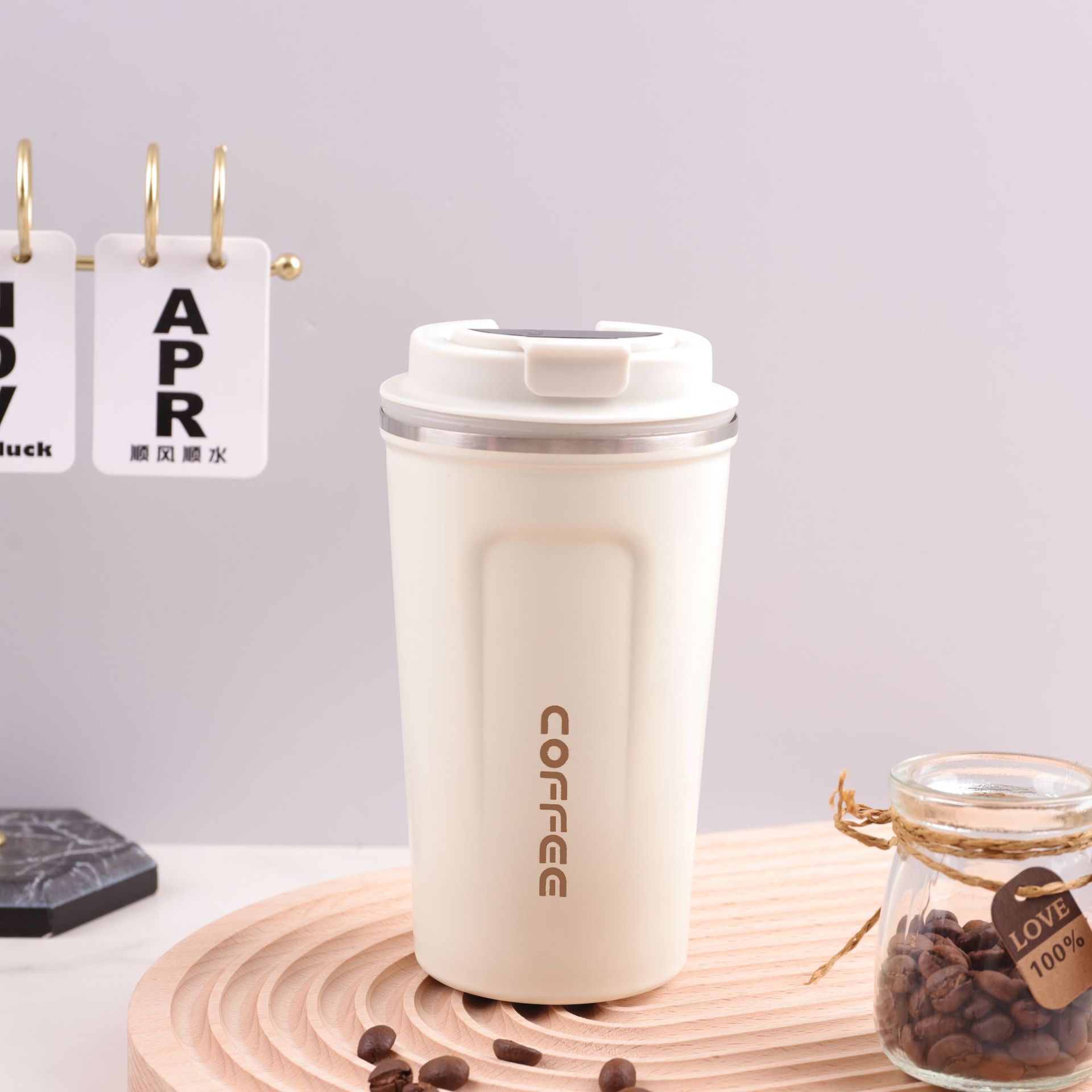 동남 아시아 304 스테인레스 스틸 커피 컵 지능형 온도 측정 보온병 컵 여성용 야외 자동차 물 컵 휴대용 핸디 컵