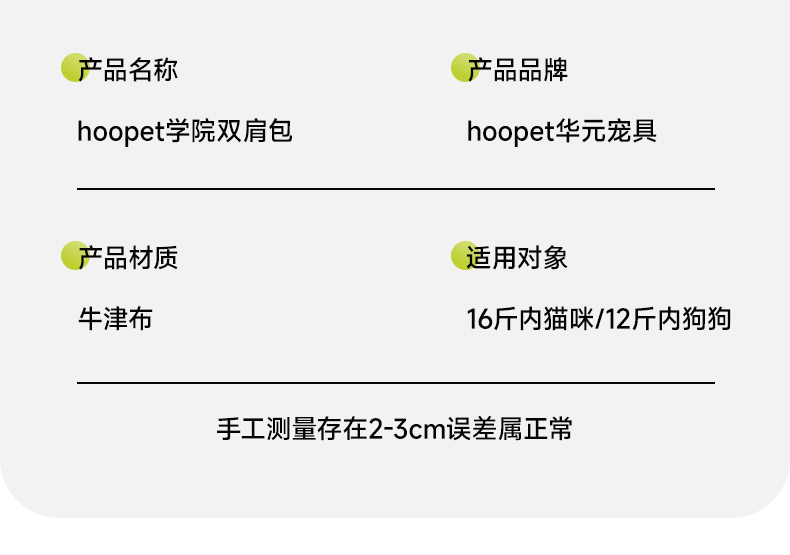 品名/Trade name | hoopet学院双肩包(灰/黄) |