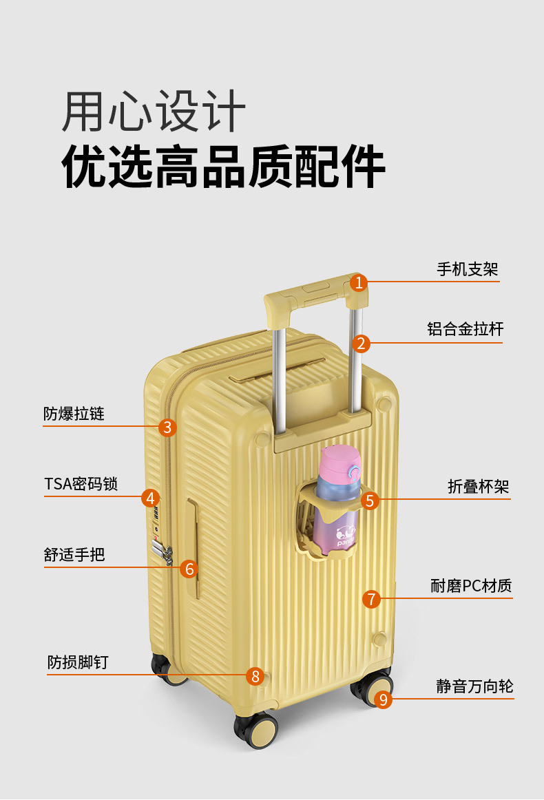 26 인치 여행 가방 대용량 트롤리 케이스 다기능 PC 여행 가방 지퍼 튼튼한 범용 휠 암호 상자