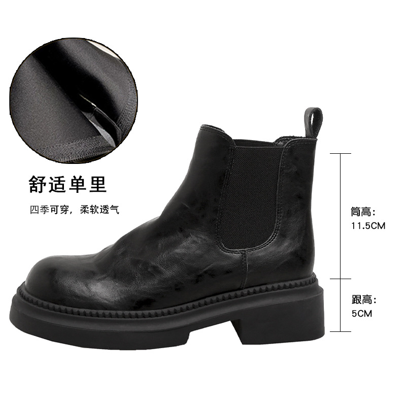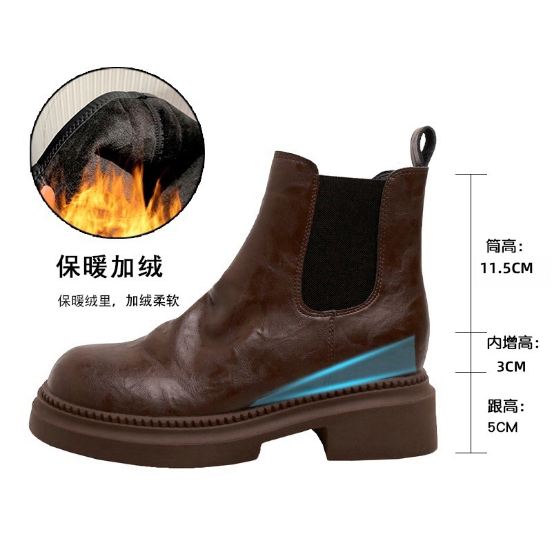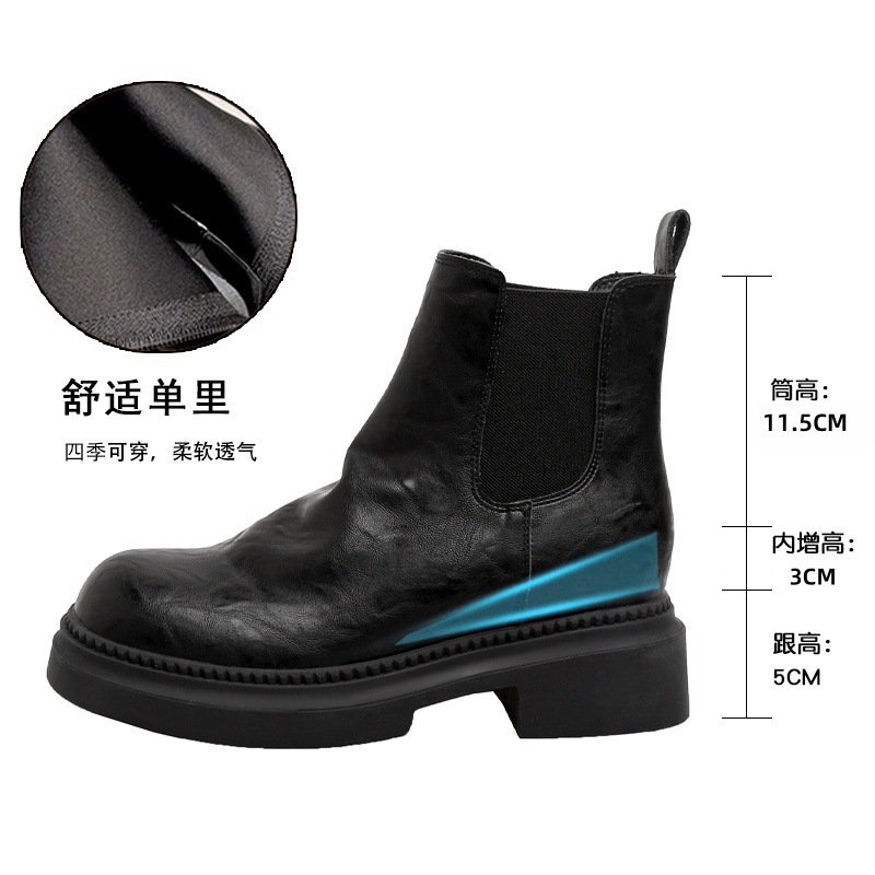 여성용 워싱 소가죽 이너 키높이 숏부츠, 주름 굵은 굽, 레트로 디스트레스드 스모크 마이너스 스트레치 부츠, 첼시 숏부츠, 여성용 부츠스토어 가기