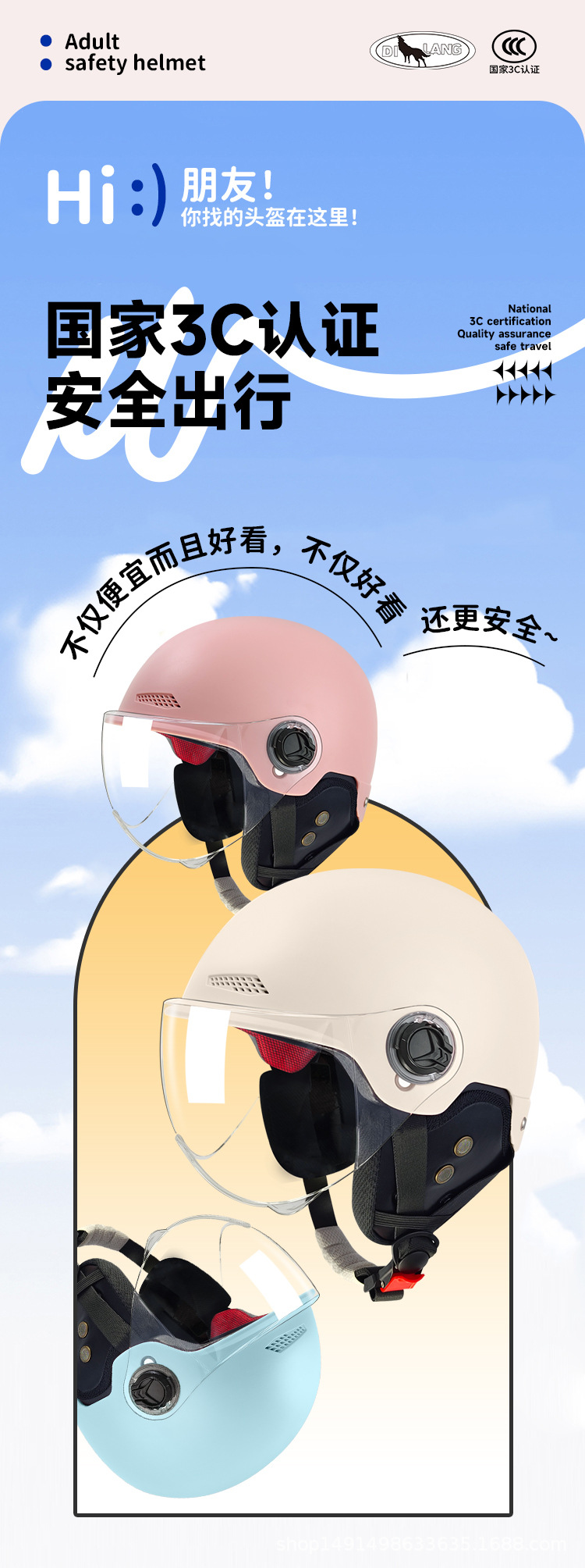 3C 인증 오토바이 전기 자동차 헬멧 여성용 사계절 겨울 따뜻한 반 헬멧 배터리 자동차 남성용 안전 헬멧스토어 가기