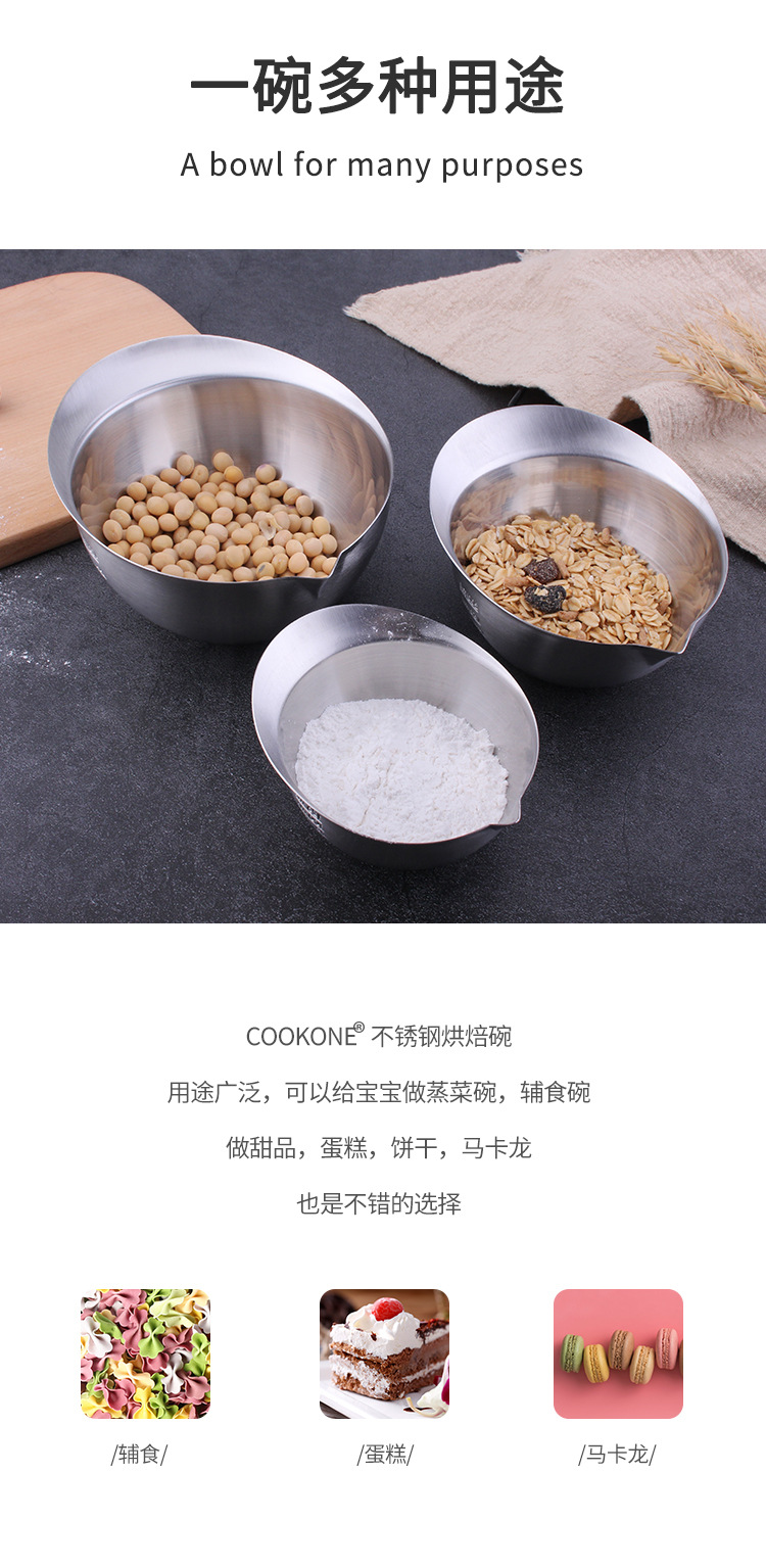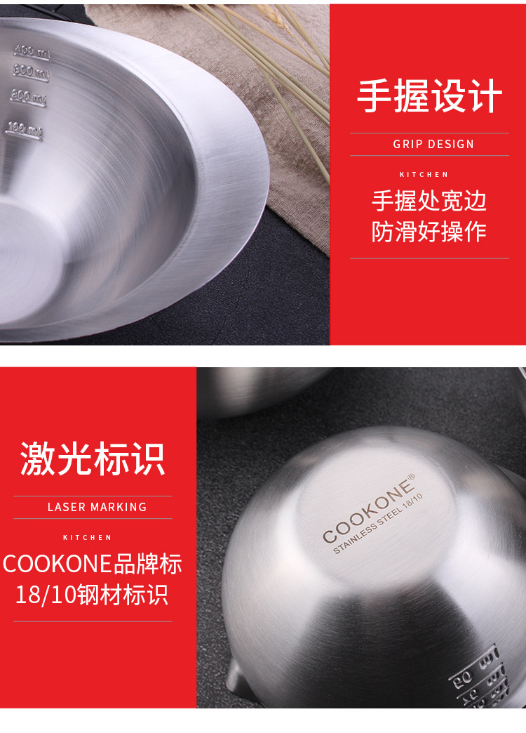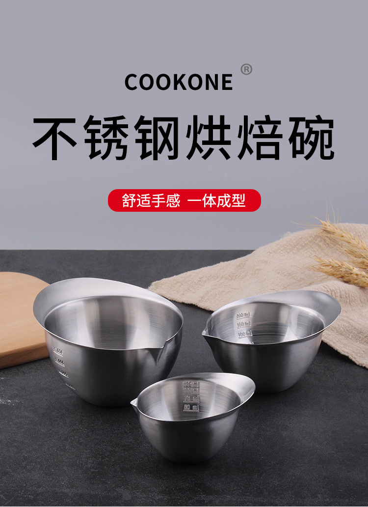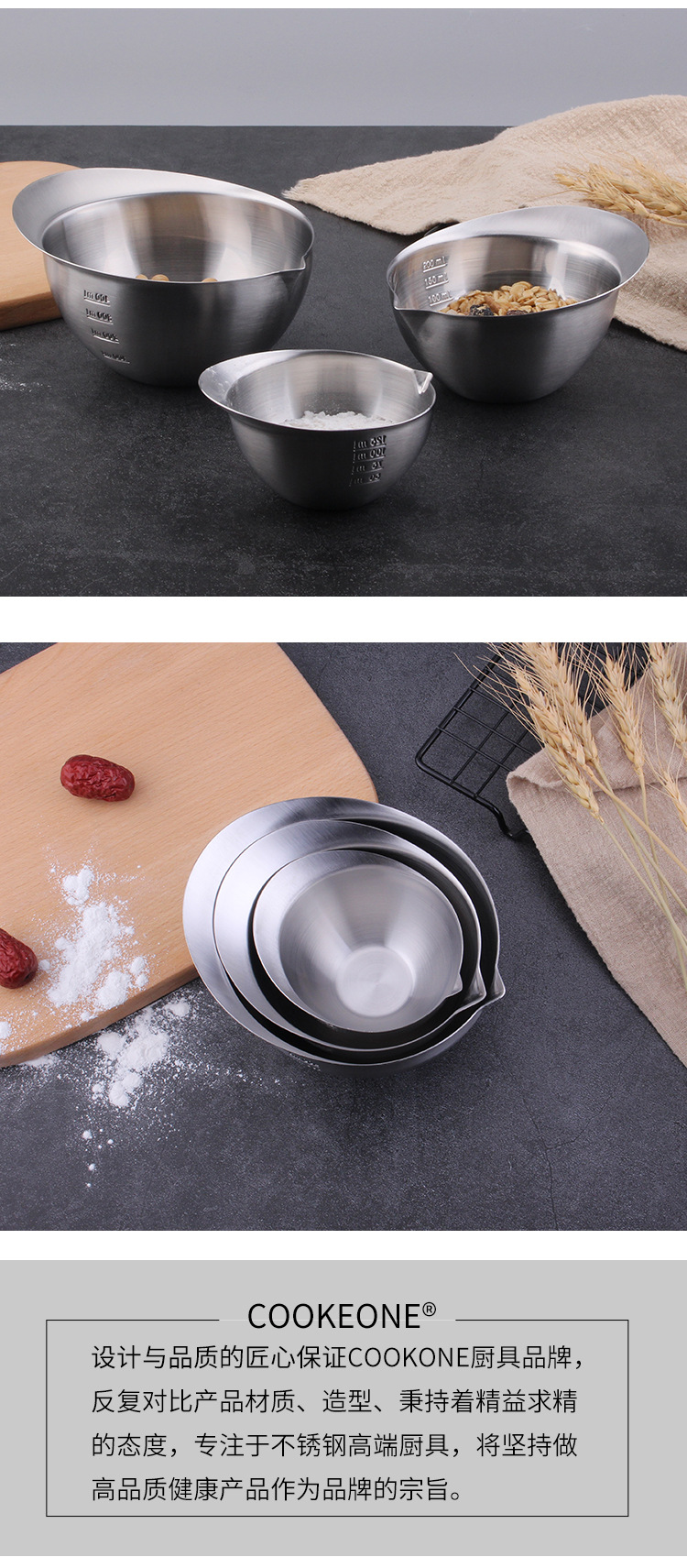 COOKONE18/10 스테인레스 스틸 두껍게 한 chickenmouth 베이킹 그릇 측정 컵 저울 계란 구타 요리 믹싱 그릇