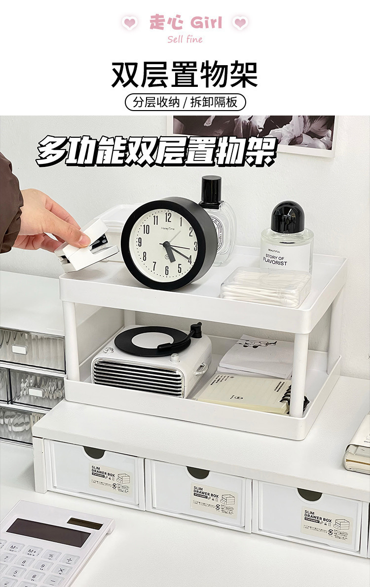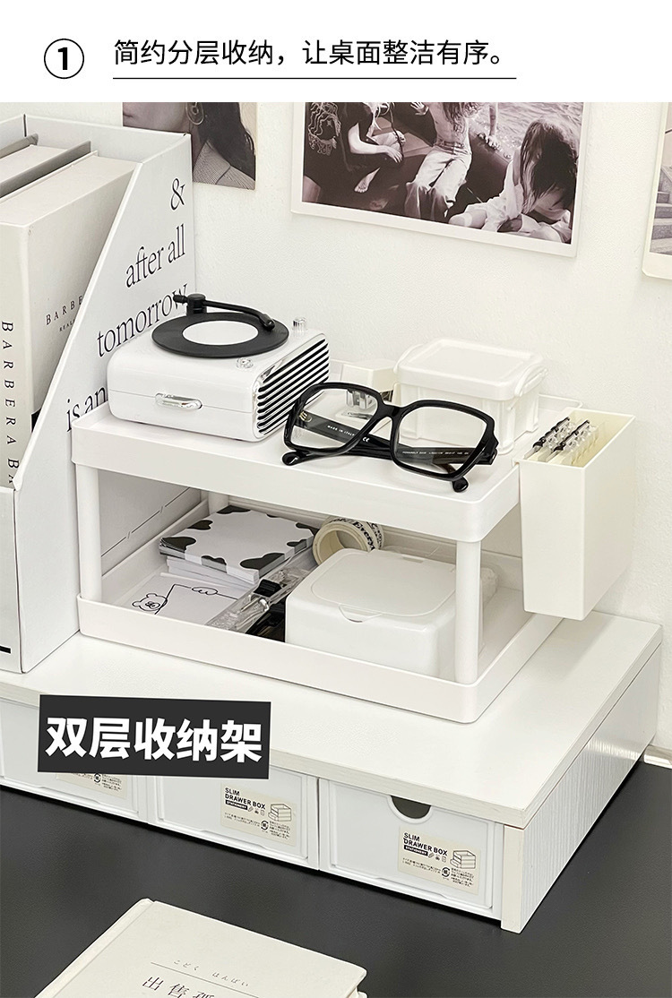 더블 레이어 스토리지 랙 데스크탑 스토리지 랙 기숙사 책상 문구 배열 랙 사무실 간단한 보관함스토어 가기