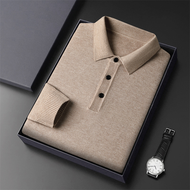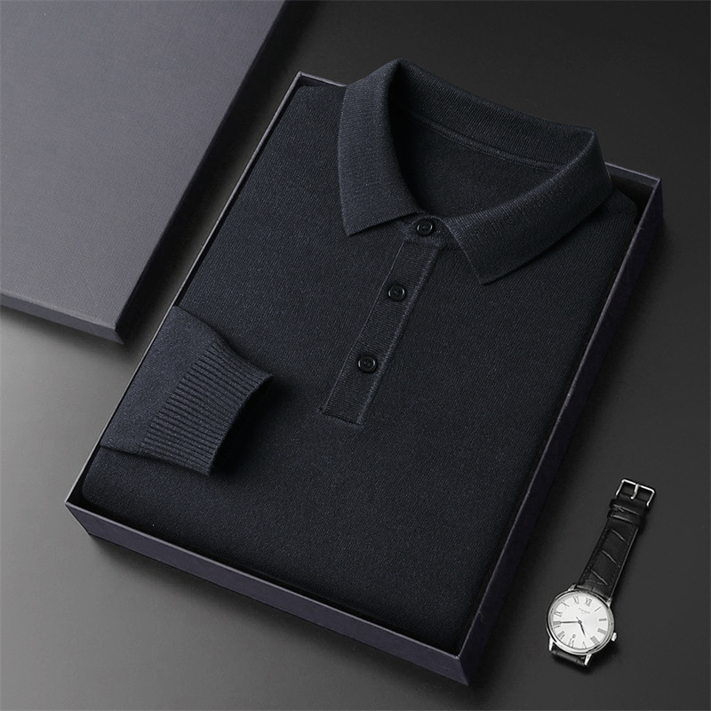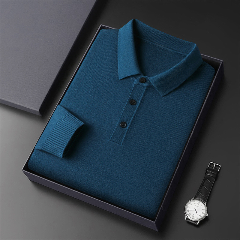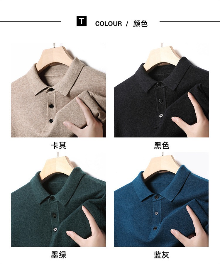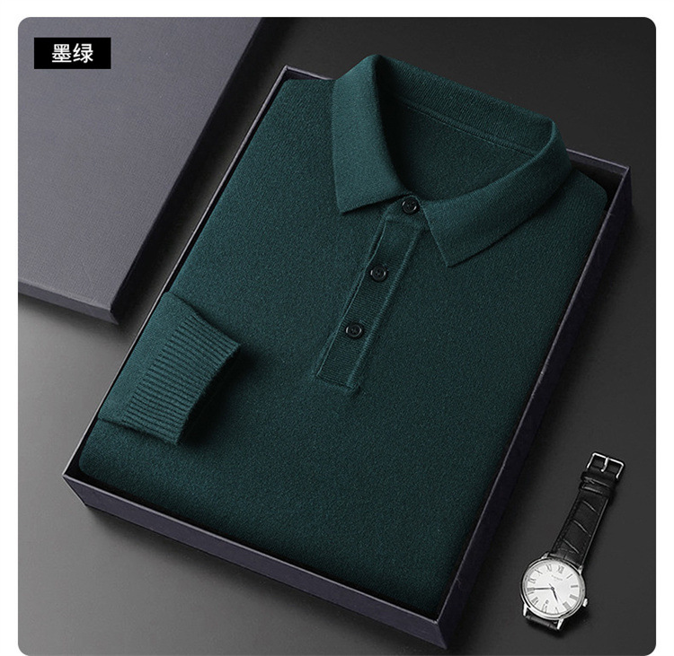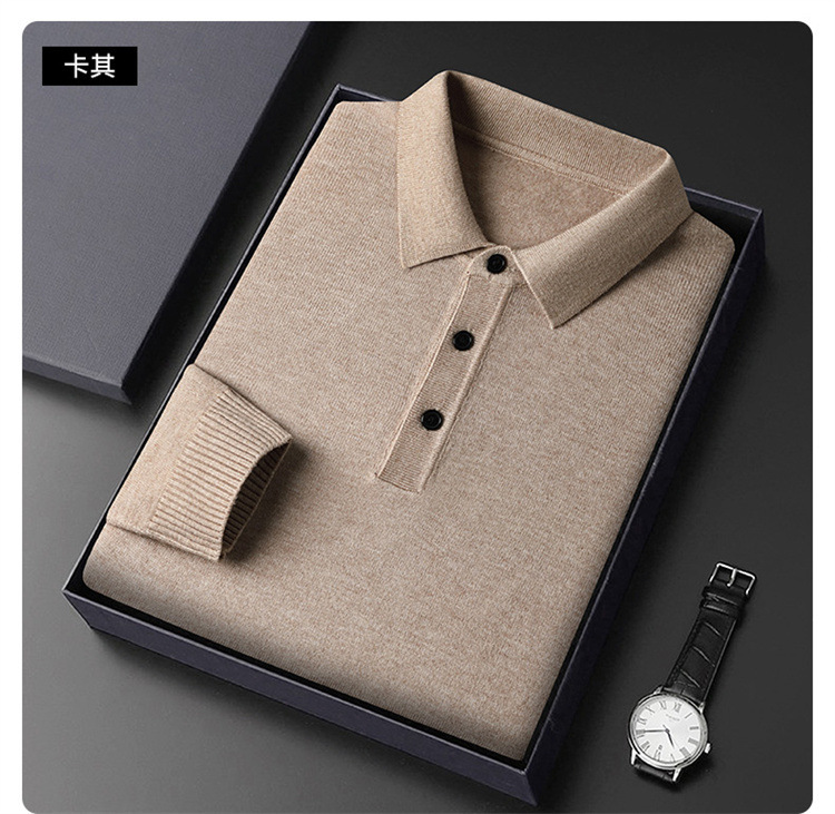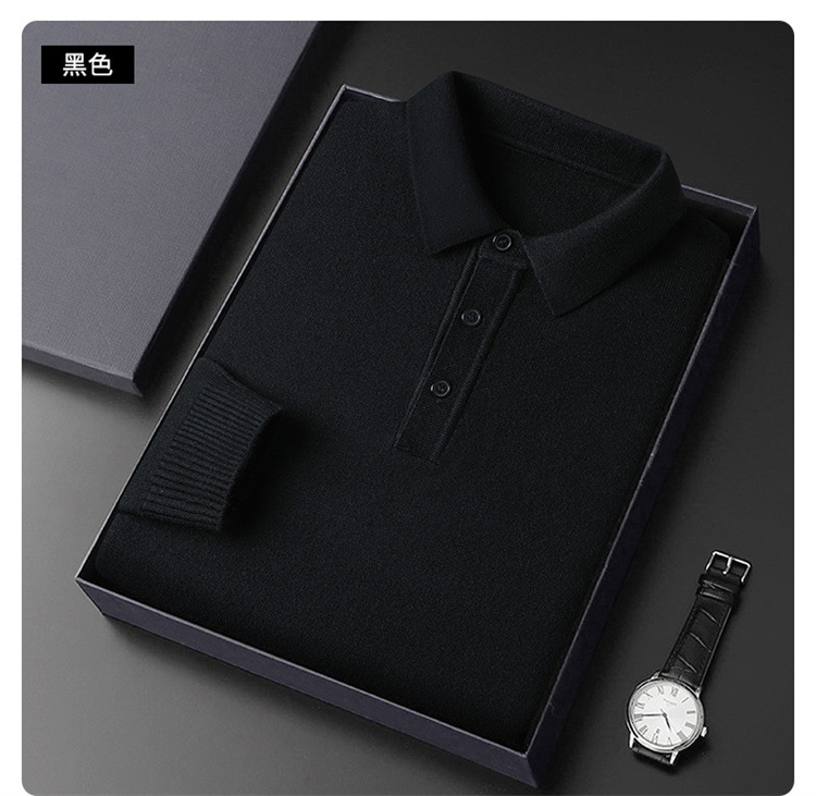 남자 울 스웨터 2023 가을 두꺼운 긴팔 티셔츠 젊은 중년 니트 스웨터 옷깃 컬러 폴로 스웨터스토어 가기