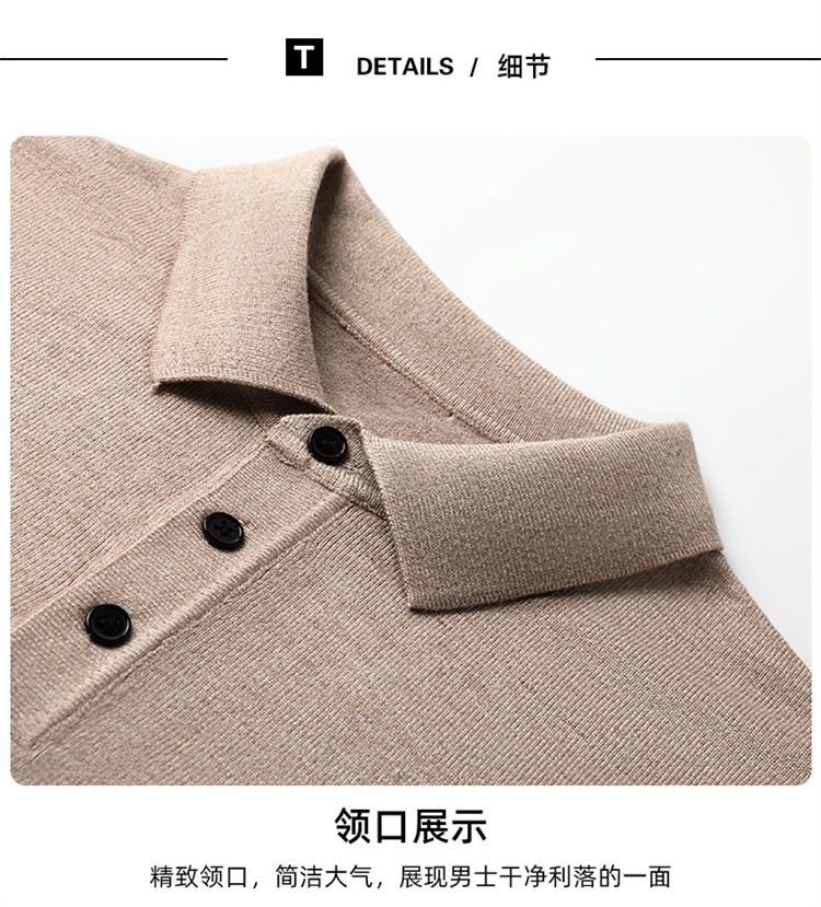 男士羊毛衫2023秋季厚款长袖t恤中青年针织衫翻领色polo衫毛衣