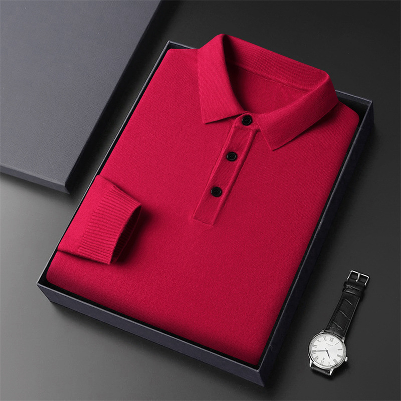 남자 울 스웨터 2023 가을 두꺼운 긴팔 티셔츠 젊은 중년 니트 스웨터 옷깃 컬러 폴로 스웨터