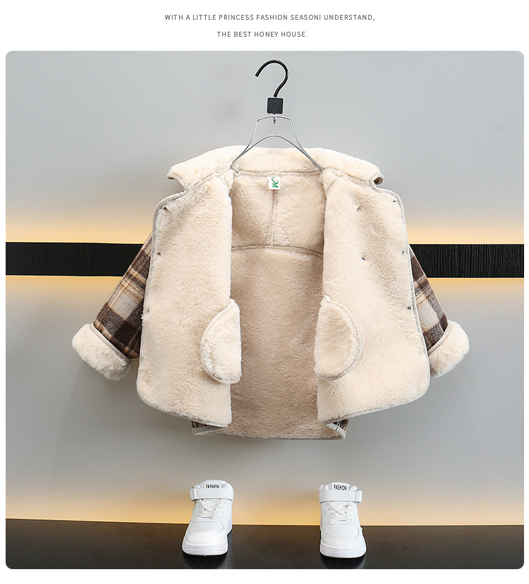 남아 모직 토끼 플러시 코트 2023 가을과 겨울 새로운 어린이 기모 패딩 따뜻한 옷 한국식 조수