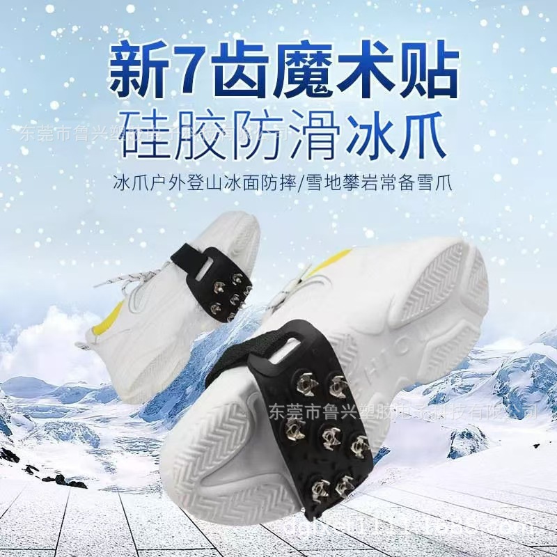 실리콘 7 치아 크램폰 벨크로 크램폰 스노우 클로 야외 등산 미끄럼 방지 신발 커버 스노우 미끄럼 방지 스파이크 두꺼운스토어 가기