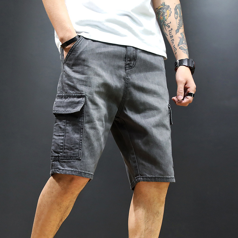 여름 남자의 카고 5 점 바지 데님 반바지 남자의 유행 느슨한 플러스 사이즈 멀티 포켓 바지 캐주얼 5 점 바지