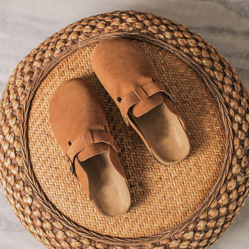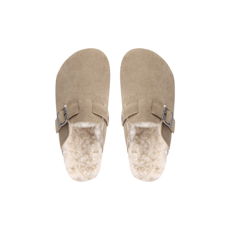 【포도엄마와 같은 스타일】정품 가죽 버전~ 레트로 가죽 키높이 퍼 버켄스탁 슬립온 여성용 반슬립온
