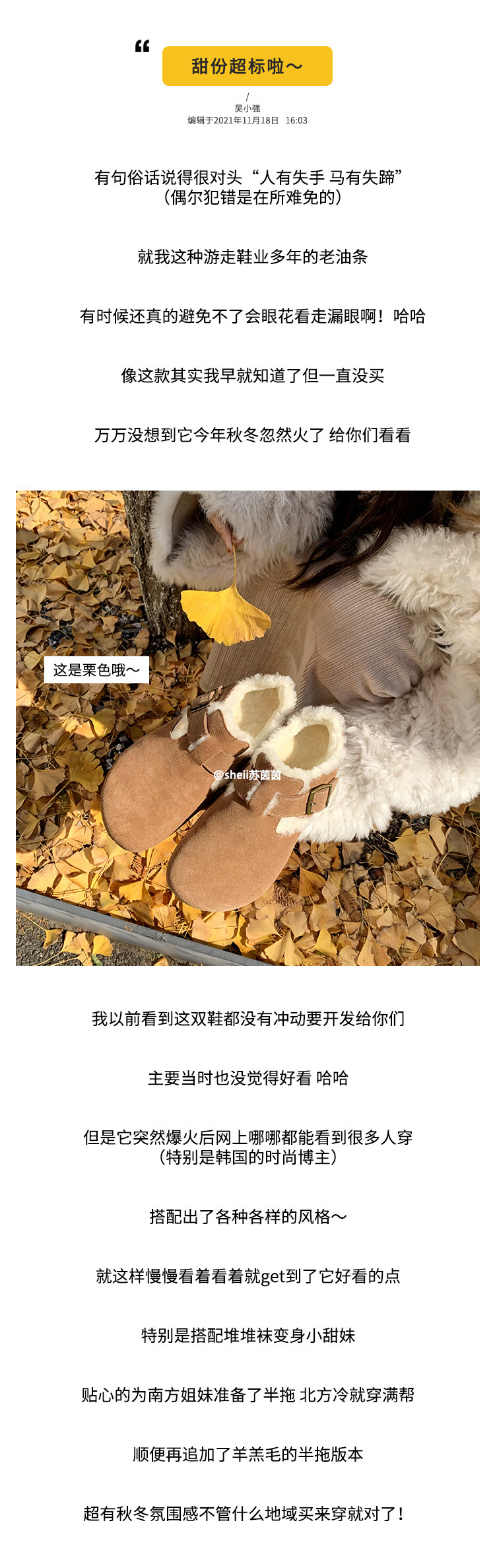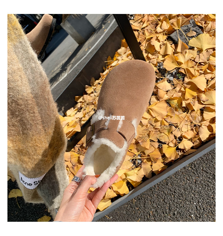 【포도엄마와 같은 스타일】정품 가죽 버전~ 레트로 가죽 키높이 퍼 버켄스탁 슬립온 여성용 반슬립온스토어 가기