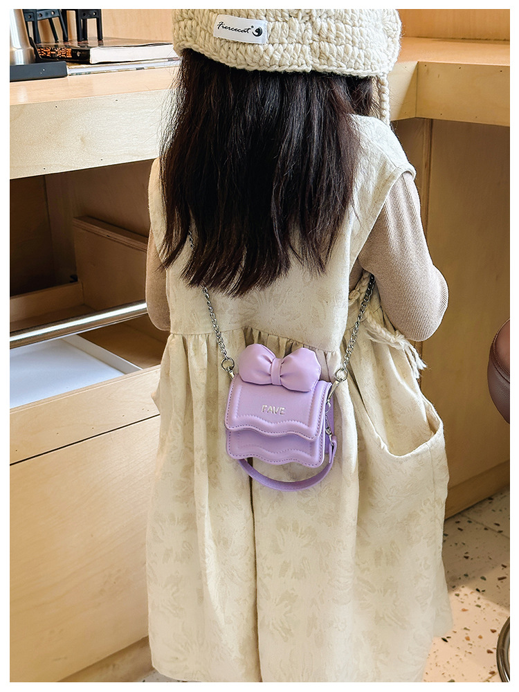 어린이 가방 2023 새로운 귀여운 활 미니 스퀘어 백 고급 체인 여아 핸드백 크로스 바디 백스토어 가기