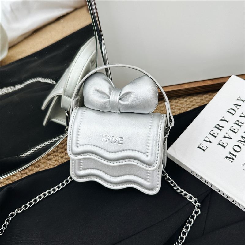 어린이 가방 2023 새로운 귀여운 활 미니 스퀘어 백 고급 체인 여아 핸드백 크로스 바디 백