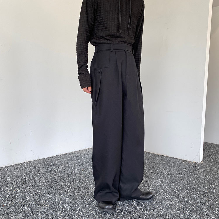 두꺼운 스트레이트 레그 팬츠 가을과 겨울 한국 스타일 디자이너 프로필 트렌디 한 캐주얼 바지 단색 벨트 장식 바지 남성용스토어 가기