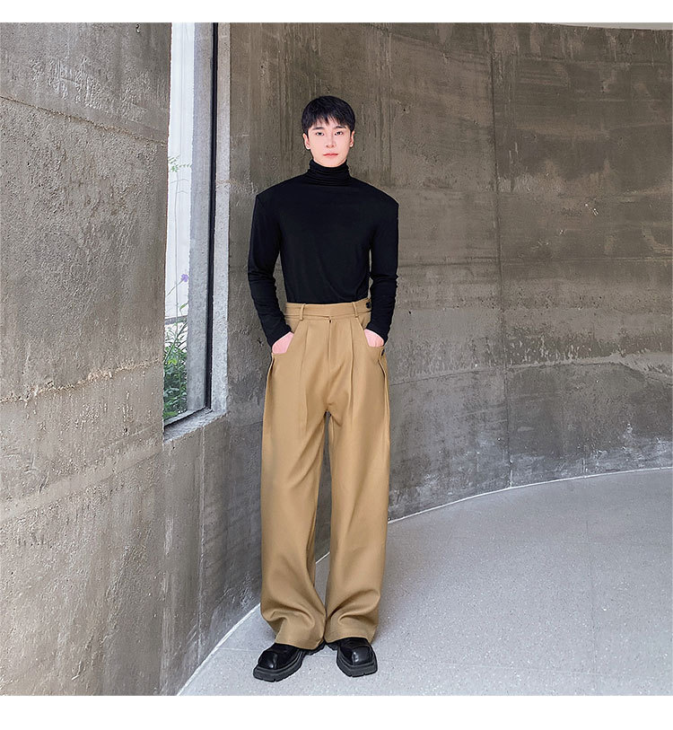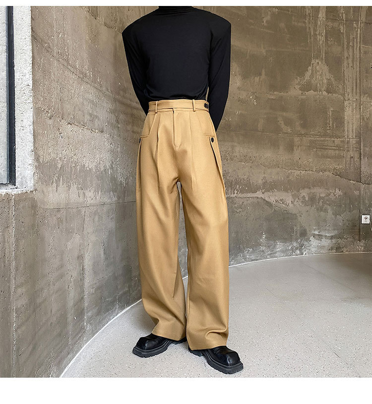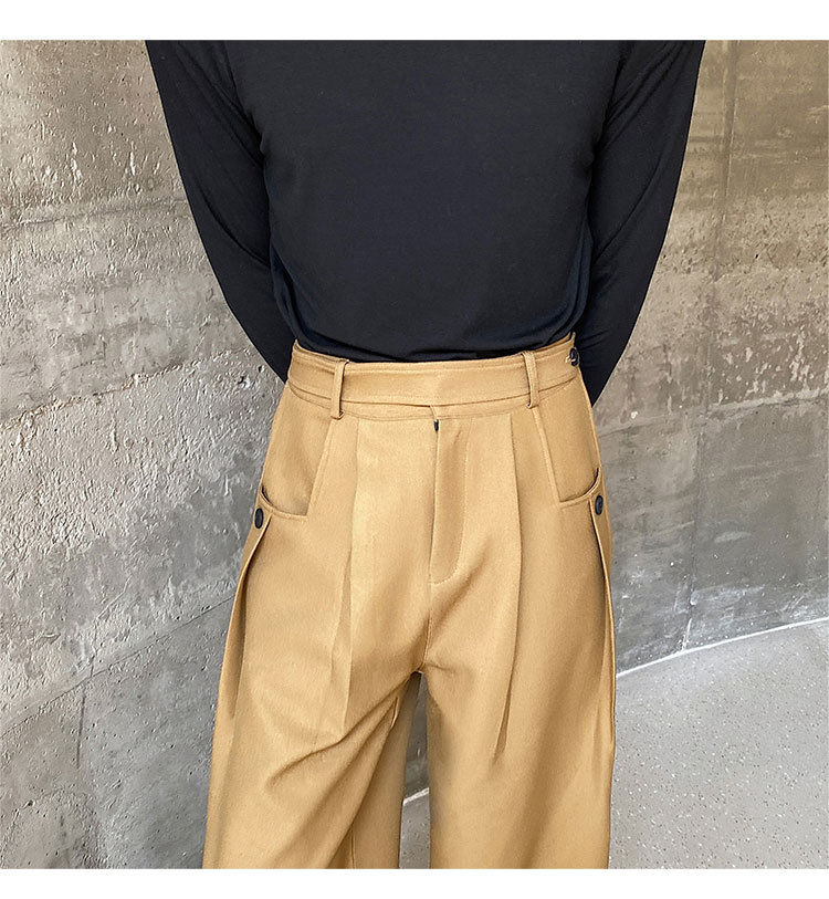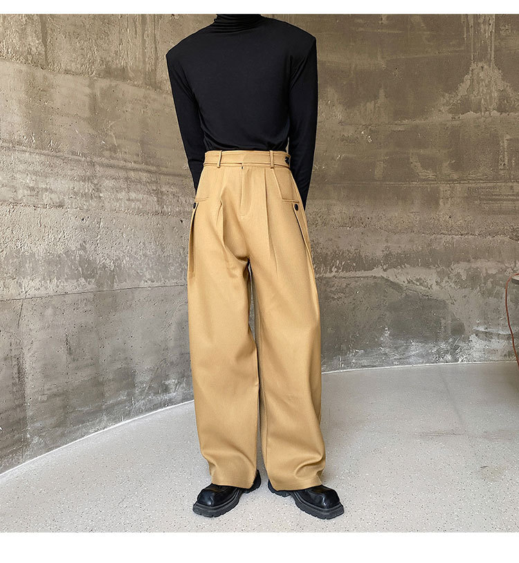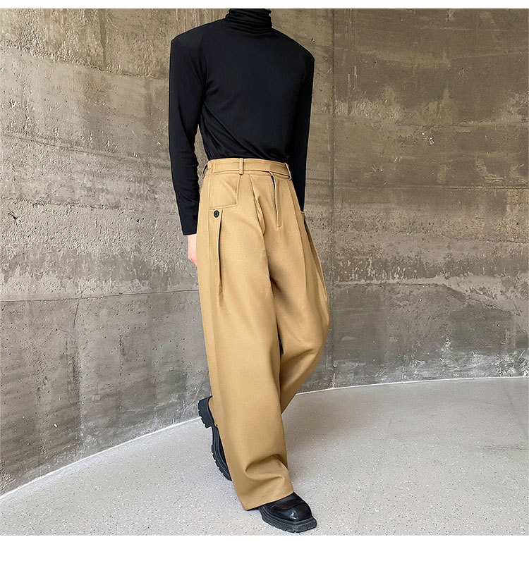두꺼운 스트레이트 레그 팬츠 가을과 겨울 한국 스타일 디자이너 프로필 트렌디 한 캐주얼 바지 단색 벨트 장식 바지 남성용