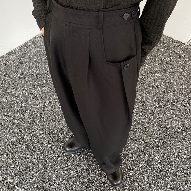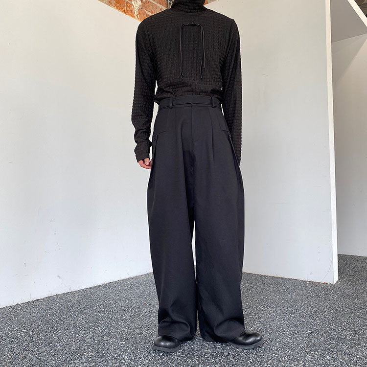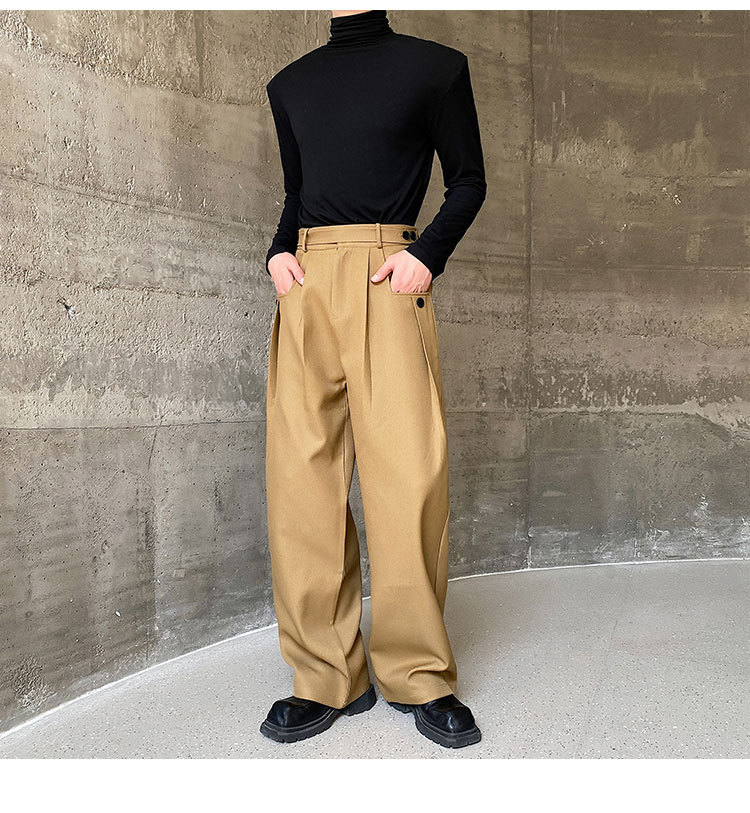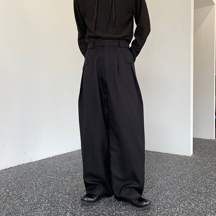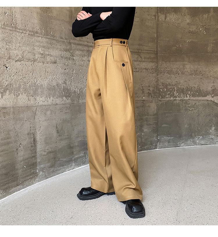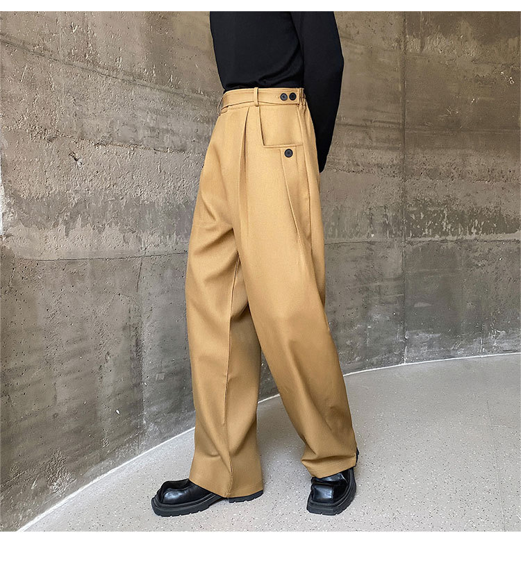 두꺼운 스트레이트 레그 팬츠 가을과 겨울 한국 스타일 디자이너 프로필 트렌디 한 캐주얼 바지 단색 벨트 장식 바지 남성용